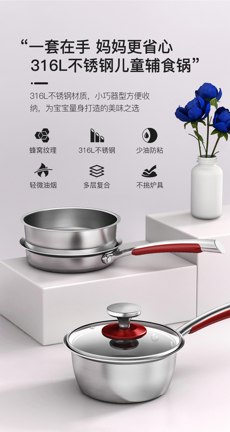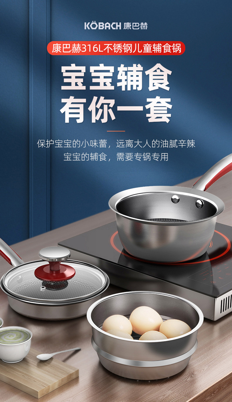 KOBACH/康巴赫316L不锈钢儿童辅食锅具两件套FJN2A