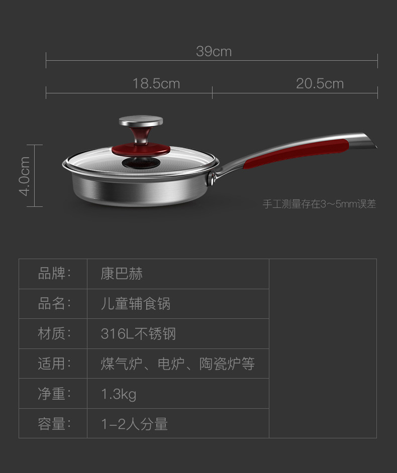 商品名称:KOBACH/康巴赫316L不锈钢儿童辅食锅具两件套FJN2A
