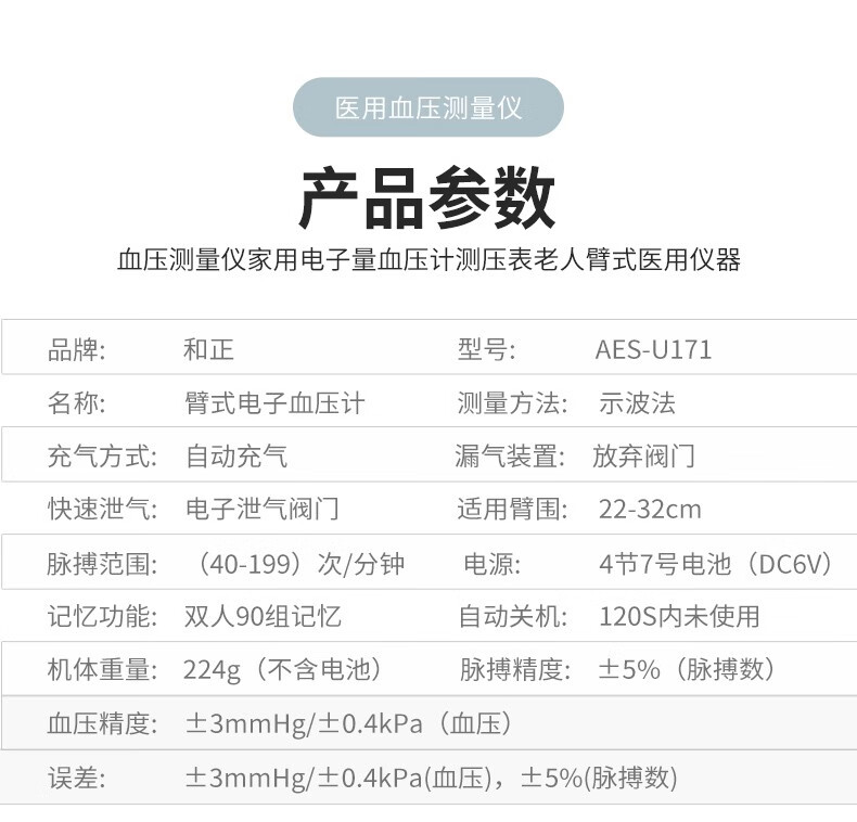 商品名称:HEZHENG/和正臂式电子血压计AES-U171