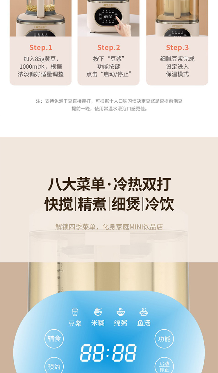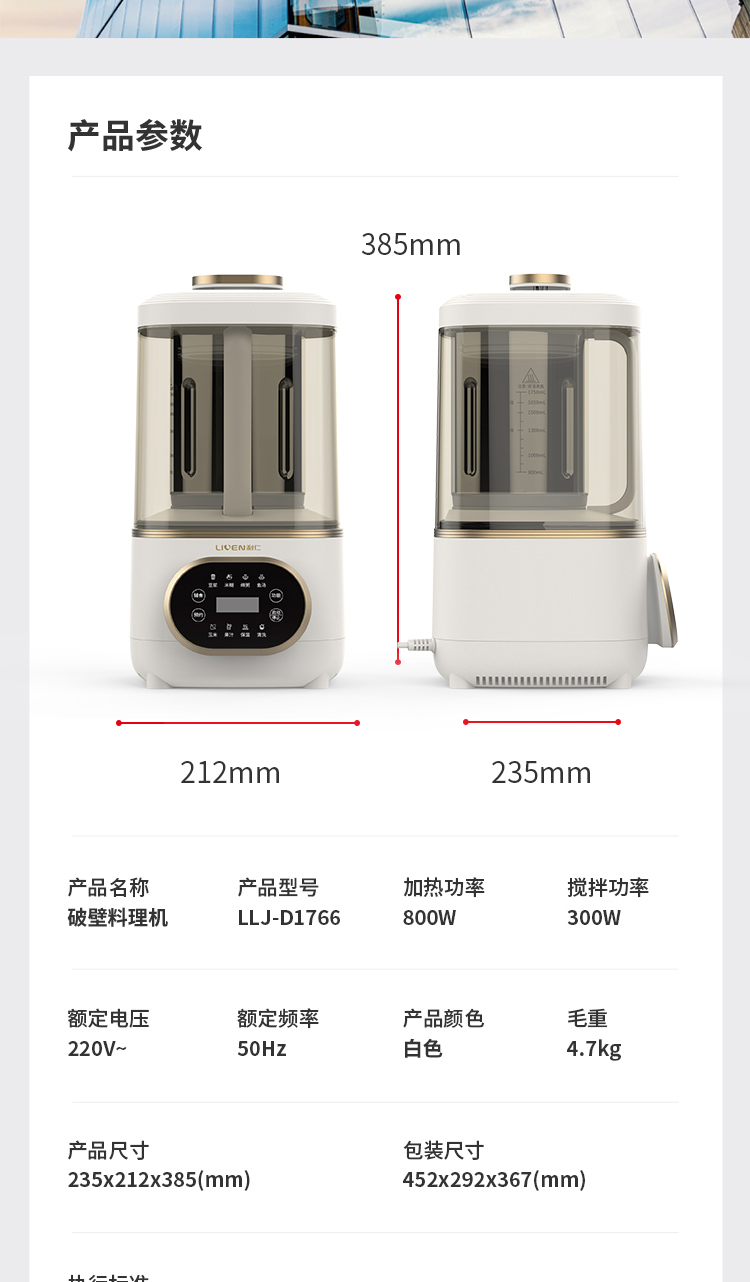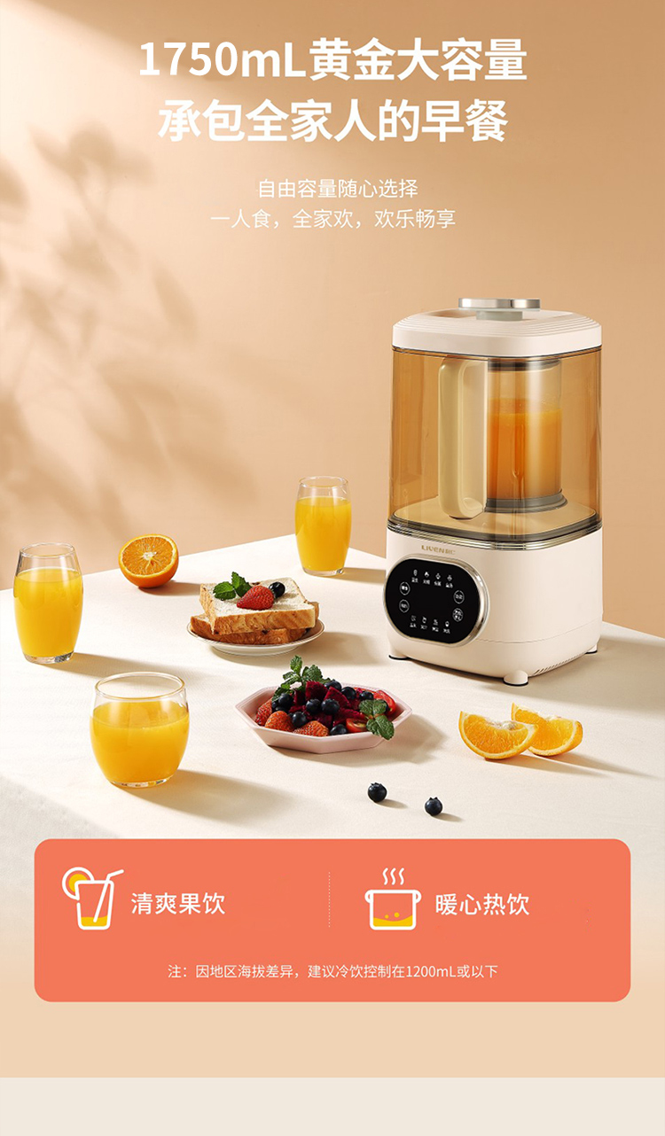 商品名称:【京东/顺丰配送】Liven/利仁1750毫升破壁料理机-白色LLJ-D1766