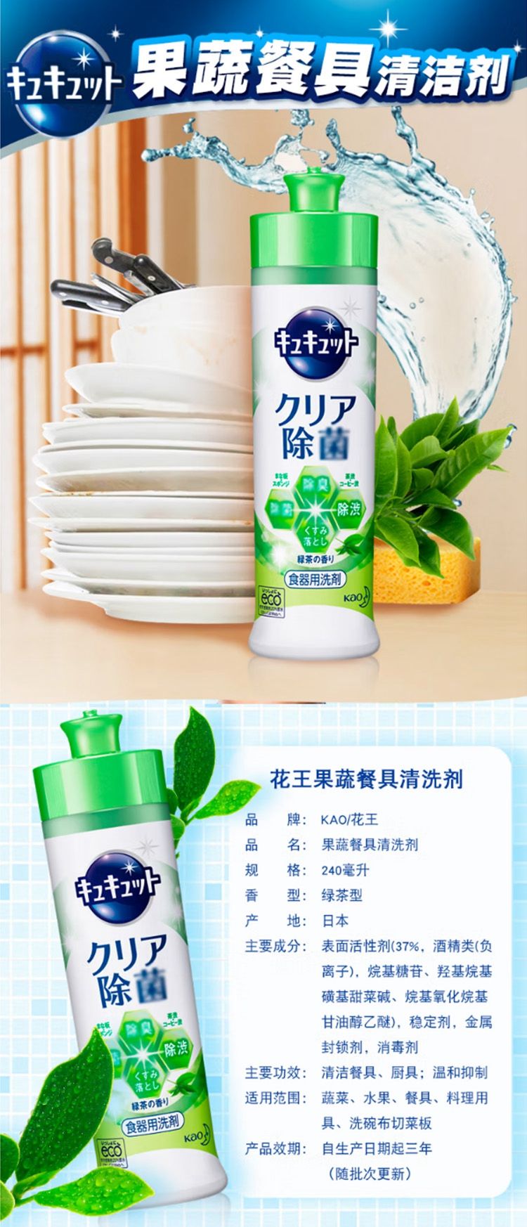 商品名称:Kao/花王果蔬餐具清洗剂-绿茶香240ml*5瓶
