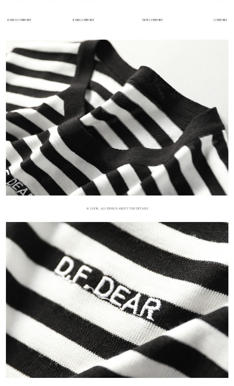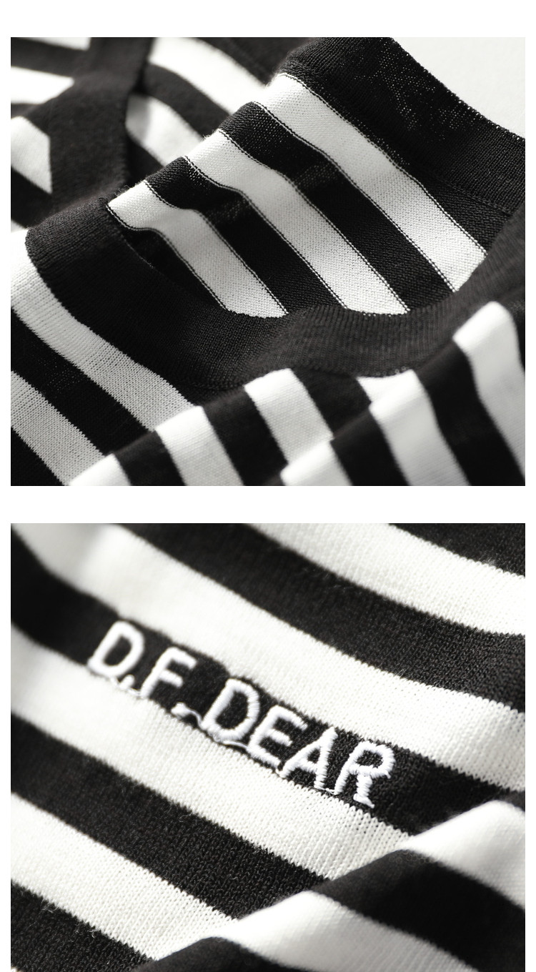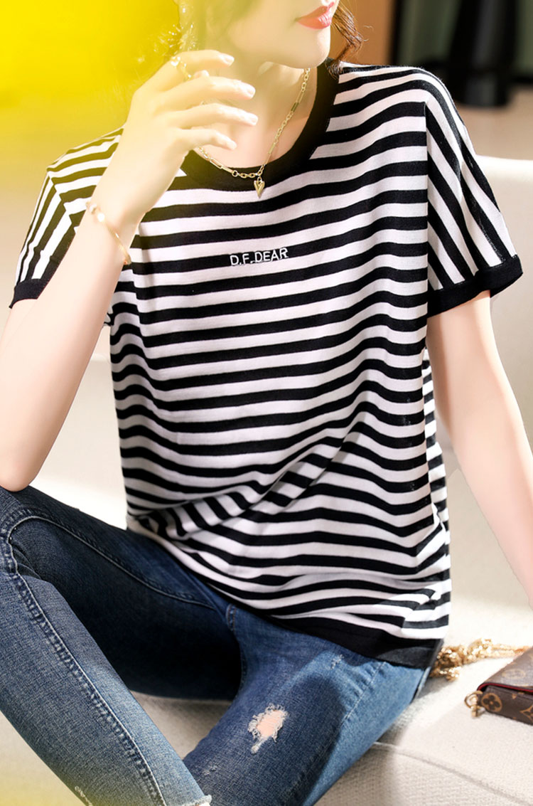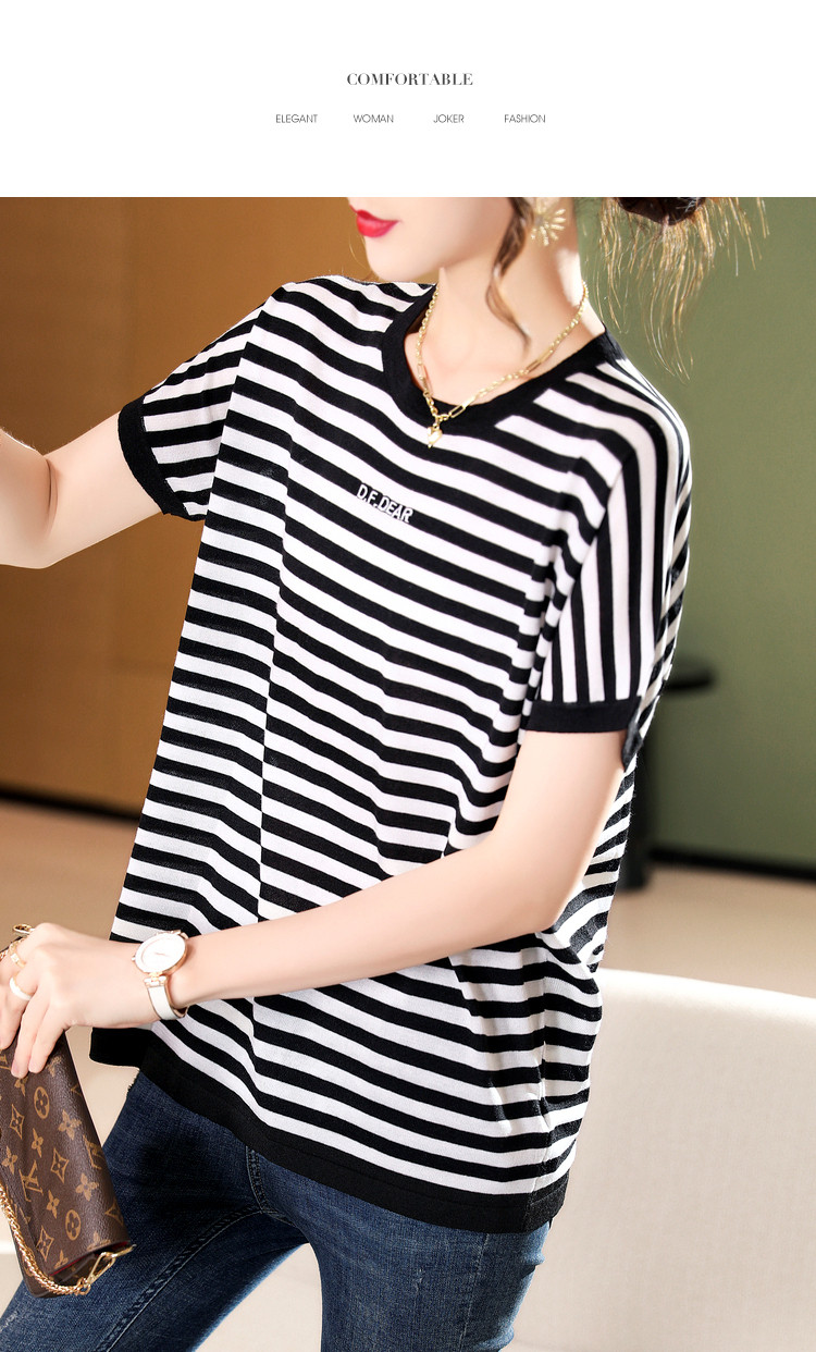 商品名称:【断码捡漏】冰丝T恤高级感经典百搭黑白条纹印字母短袖夏季新款 635529