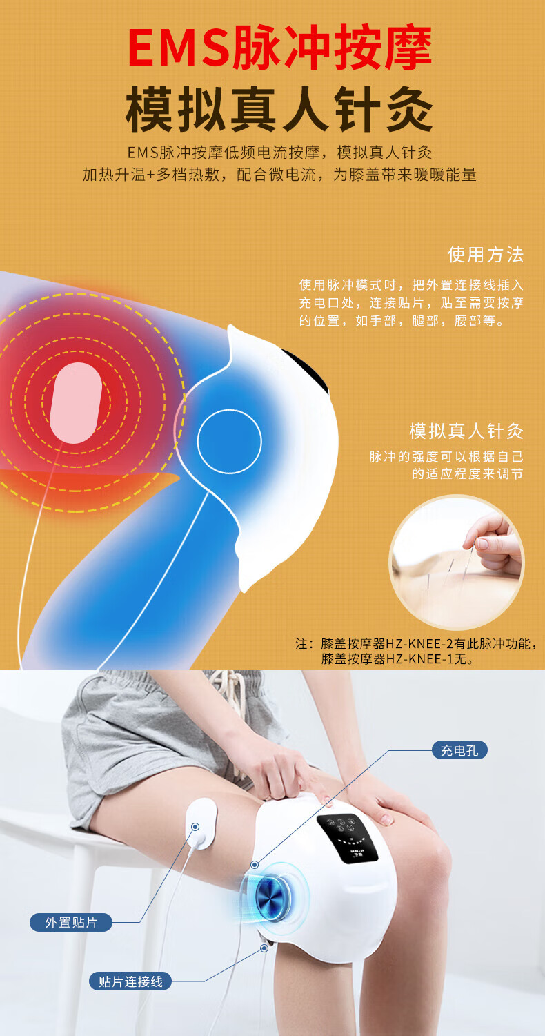 商品名称:HEZHENG/和正膝盖按摩器-白色 HZ-KNEE-2