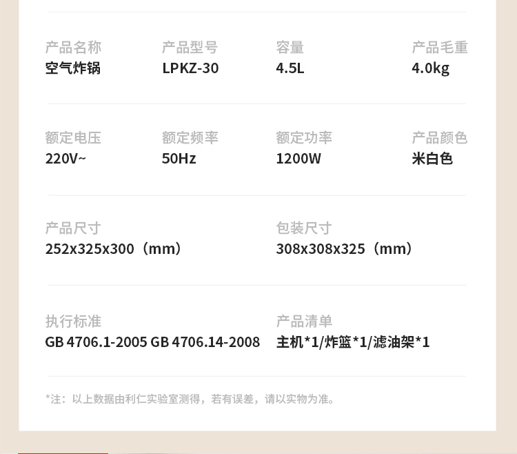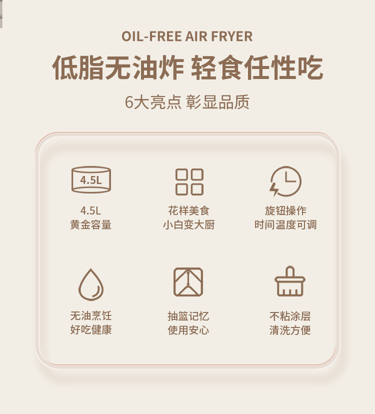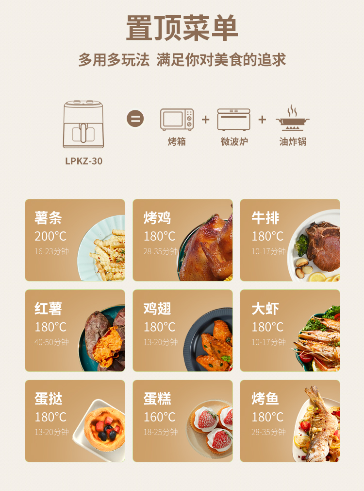 商品名称:【京东/顺丰配送】Liven/利仁4.5升可视空气炸锅-米白色LPKZ-30升级款
