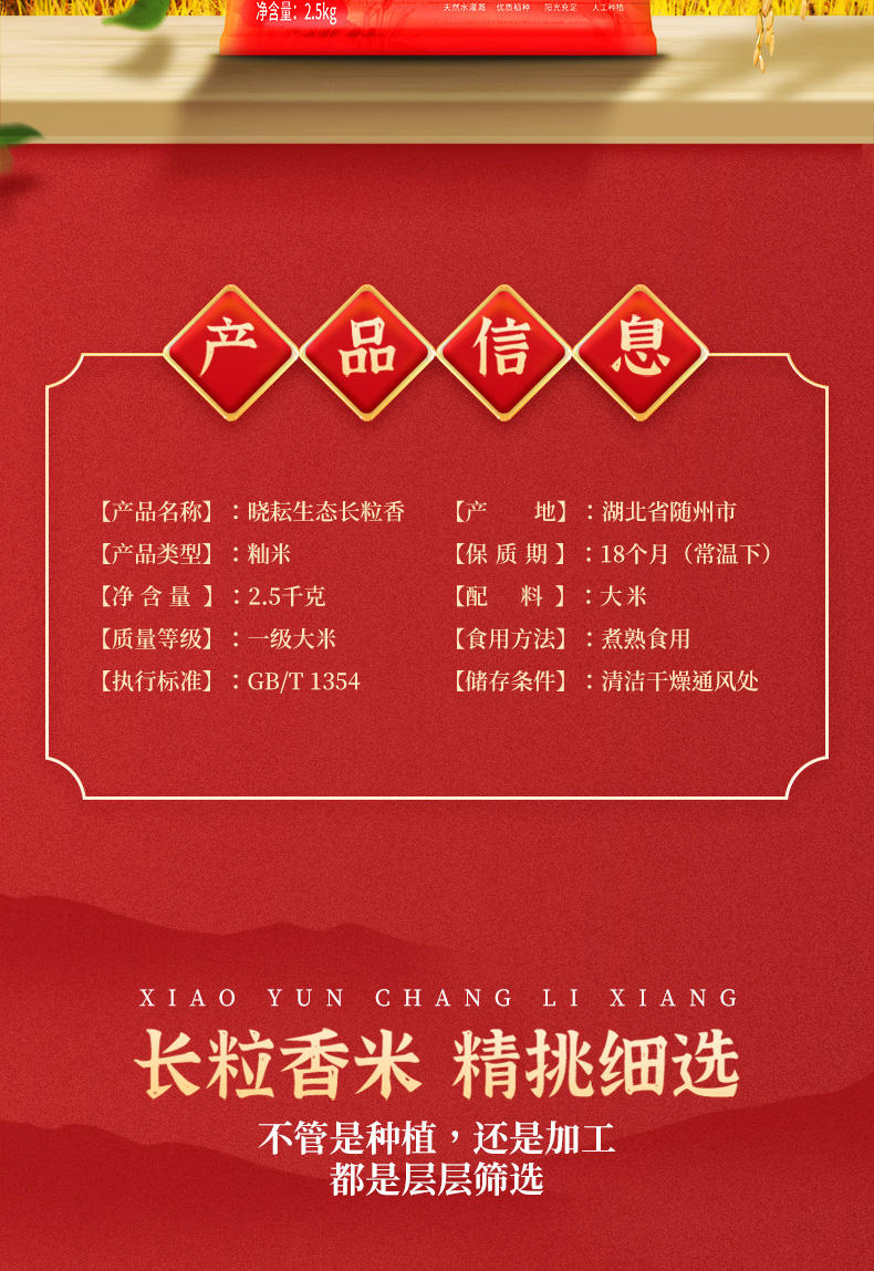 商品名称:晓耘生态长粒香米2.5kg