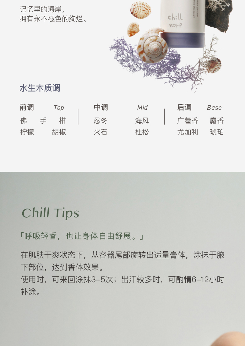 商品名称:chillmore/且悠净味清爽香体膏50g