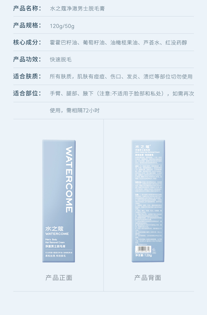 商品名称:WATERCOME/水之蔻男士专用脱毛膏120g*2支