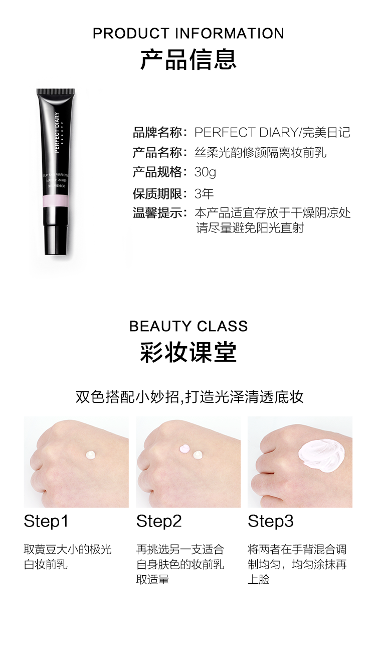 商品名称:PERFECT DIARY/完美日记丝柔光韵修颜隔离妆前乳-#02粉紫色30g
