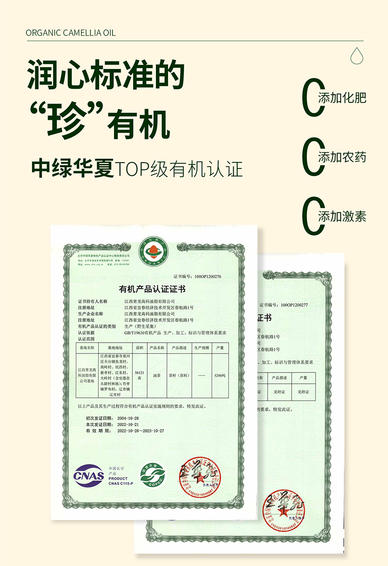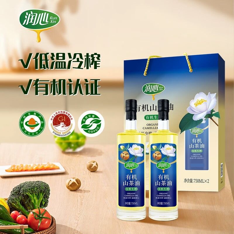 商品名称:【京东/顺丰配送】润心有机生榨山茶油礼盒装750ml*2瓶