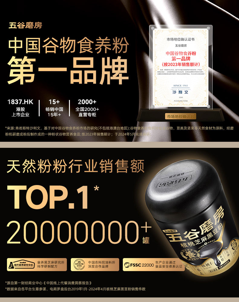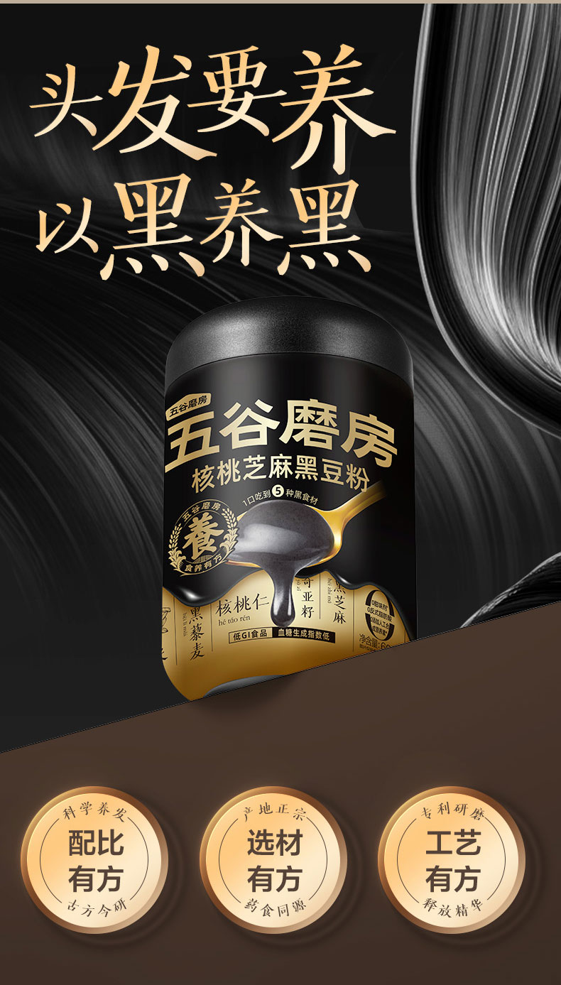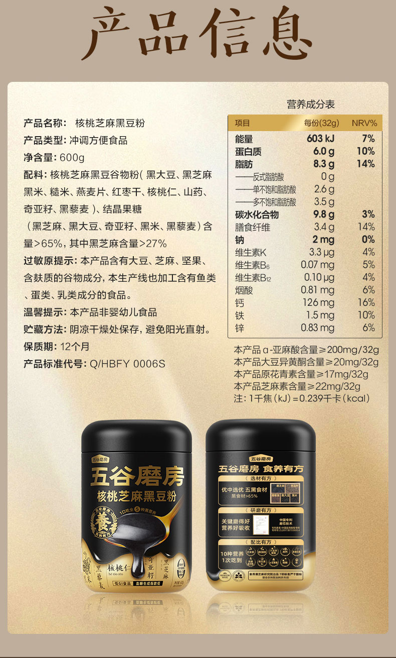 商品名称:五谷磨房黑之养核桃芝麻黑豆粉600g