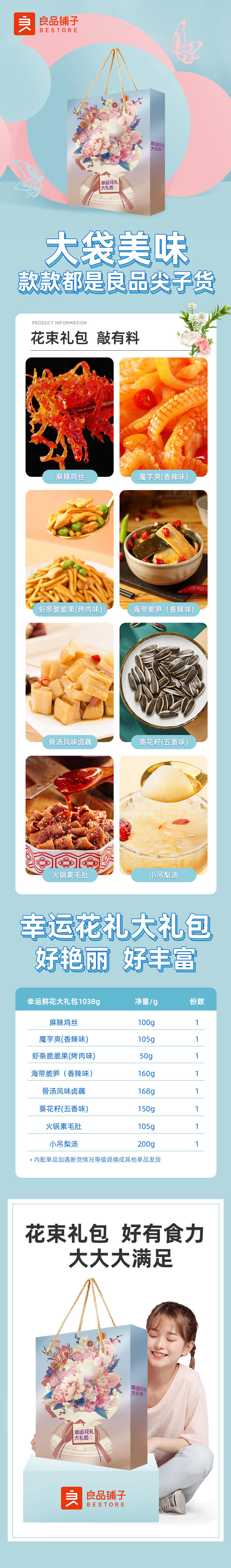 商品名称:【京东配送】良品铺子幸运花礼花束零食大礼包1038g