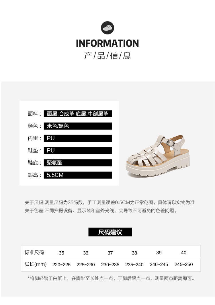 商品名称:【秒高5.5CM】女士凉鞋厚底凉鞋包头凉鞋罗马凉鞋夏季女凉鞋 850752