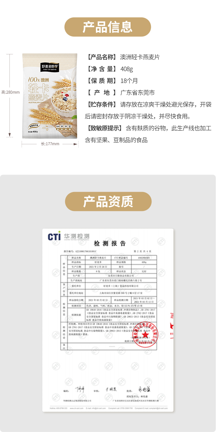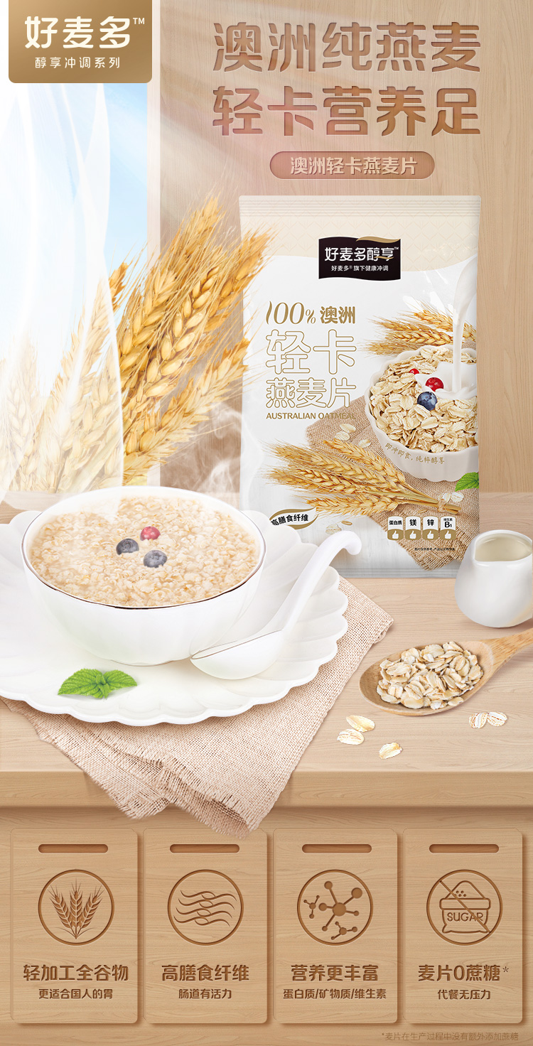 商品名称:好麦多醇享澳洲轻卡燕麦片408g*6袋