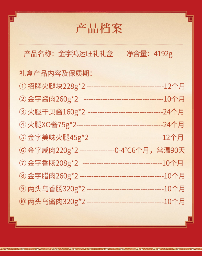 商品名称:金字鸿运旺礼江南腊味熟食礼盒4192g