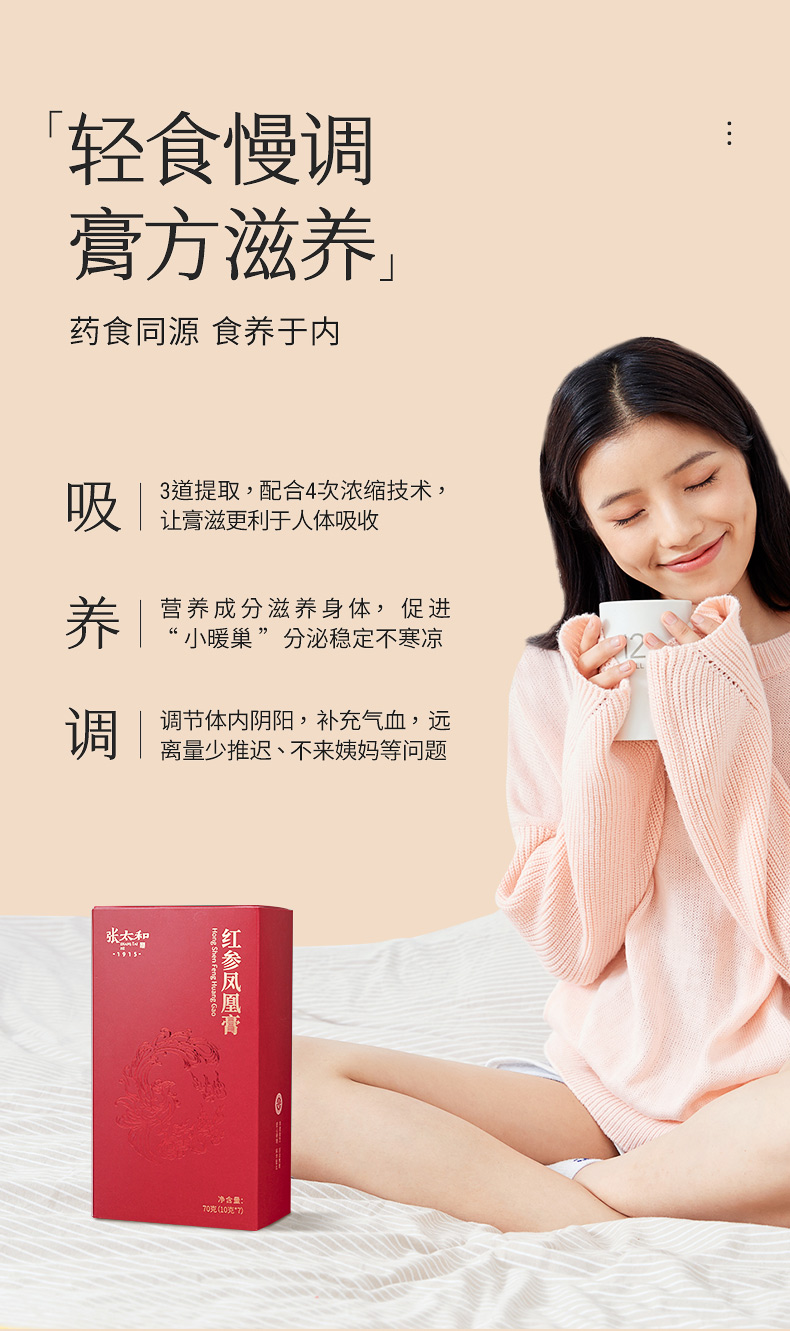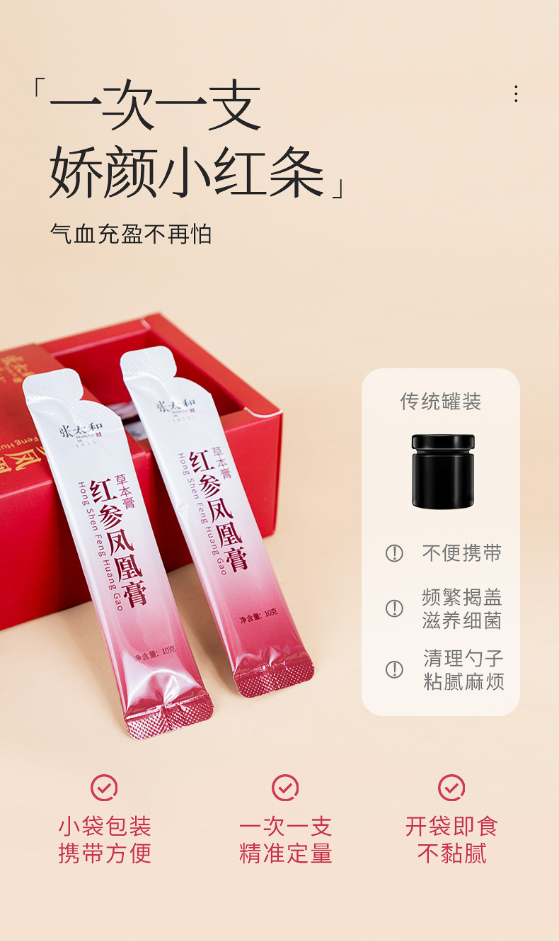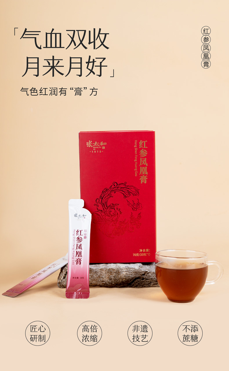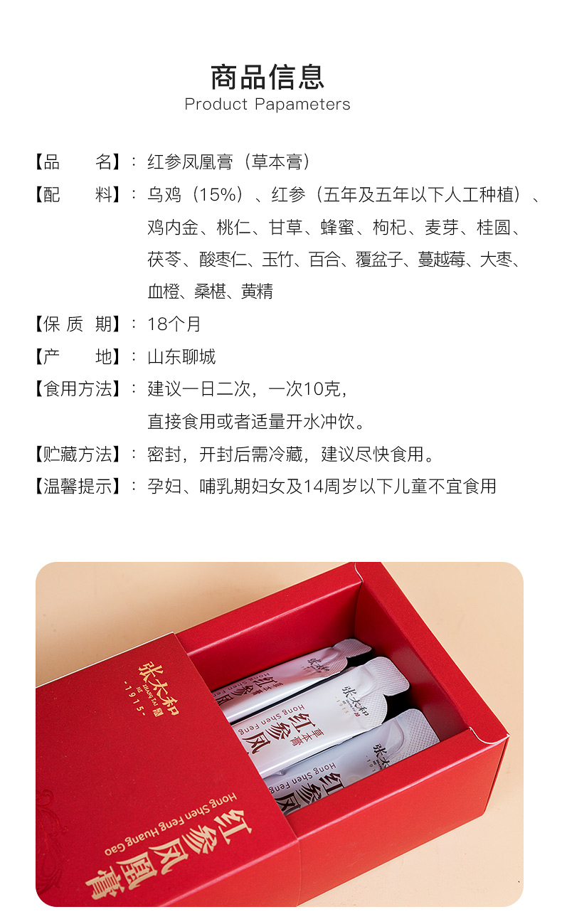 商品名称:张太和红参凤凰草本膏70g*8盒