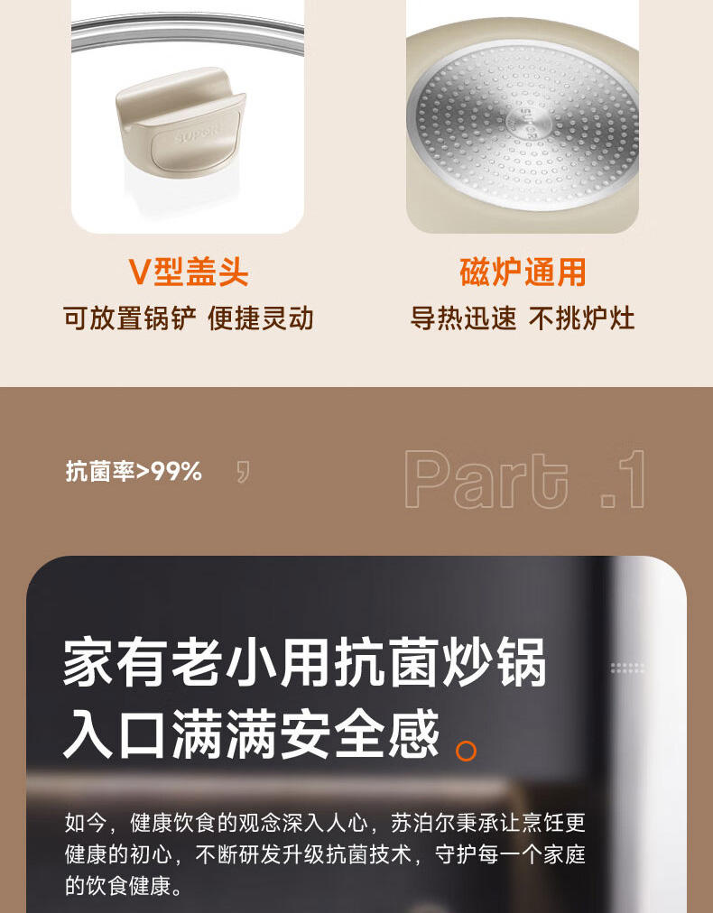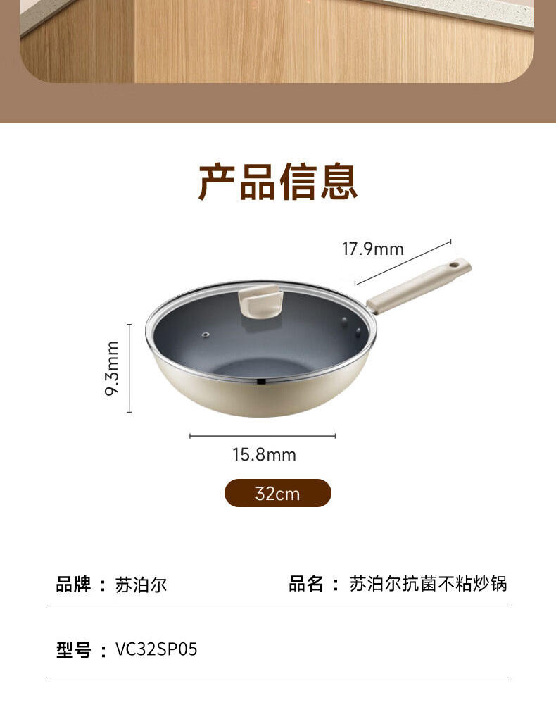 商品名称:SUPOR/苏泊尔32cm抗菌带盖不粘炒锅VC32SP05