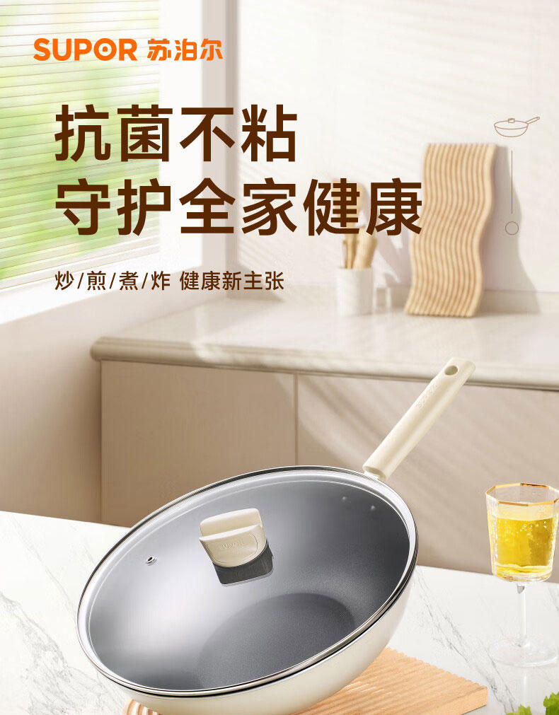 SUPOR/苏泊尔32cm抗菌带盖不粘炒锅VC32SP05