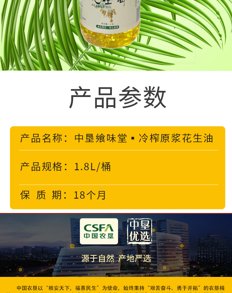 商品名称:【德邦配送】CSFA/中国农垦中垦飨味堂冷榨原浆花生油1.8L