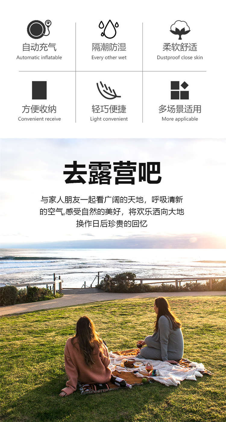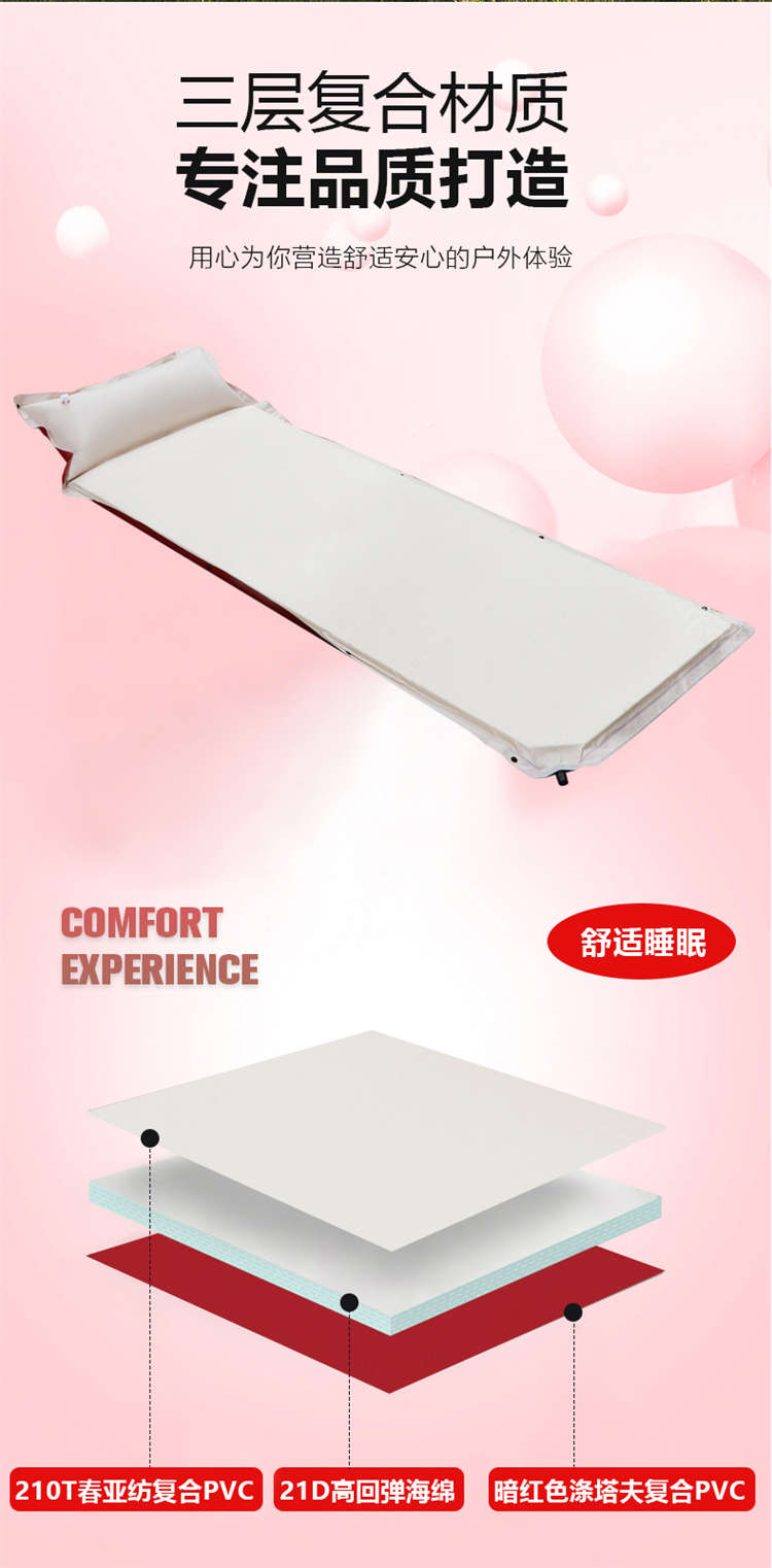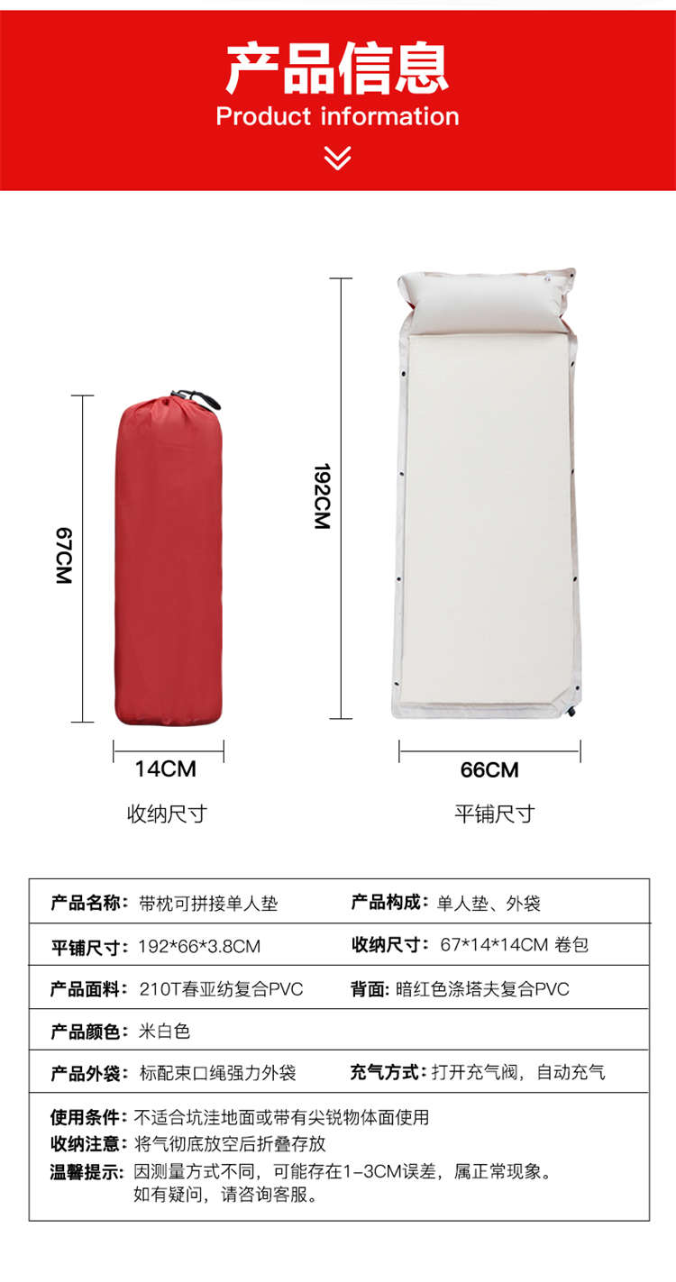商品名称:趣游帮户外带枕可拼接单人垫-米白色192*66cm Y28-D38