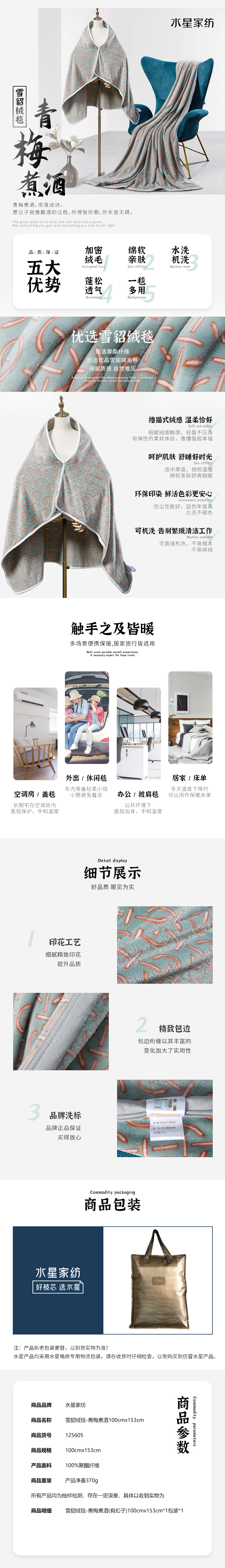 商品名称:水星家纺青梅煮酒雪貂绒毯 100*153cm 370g
