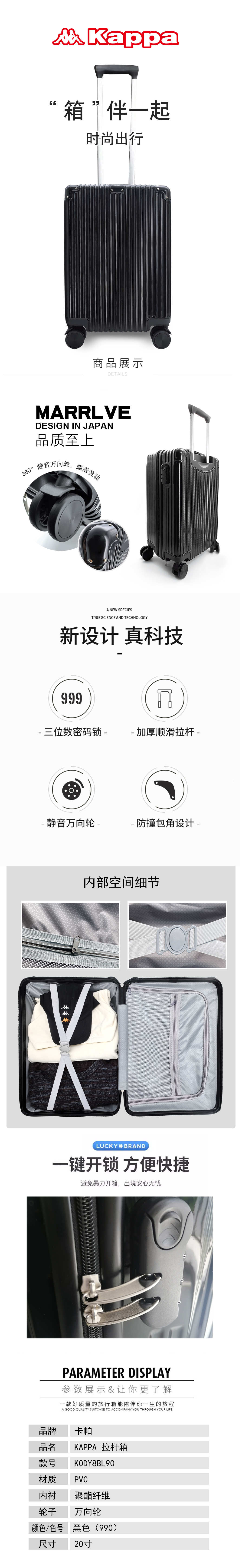 商品名称:KAPPA/卡帕拉杆箱20寸-黑色K0DY8BL90