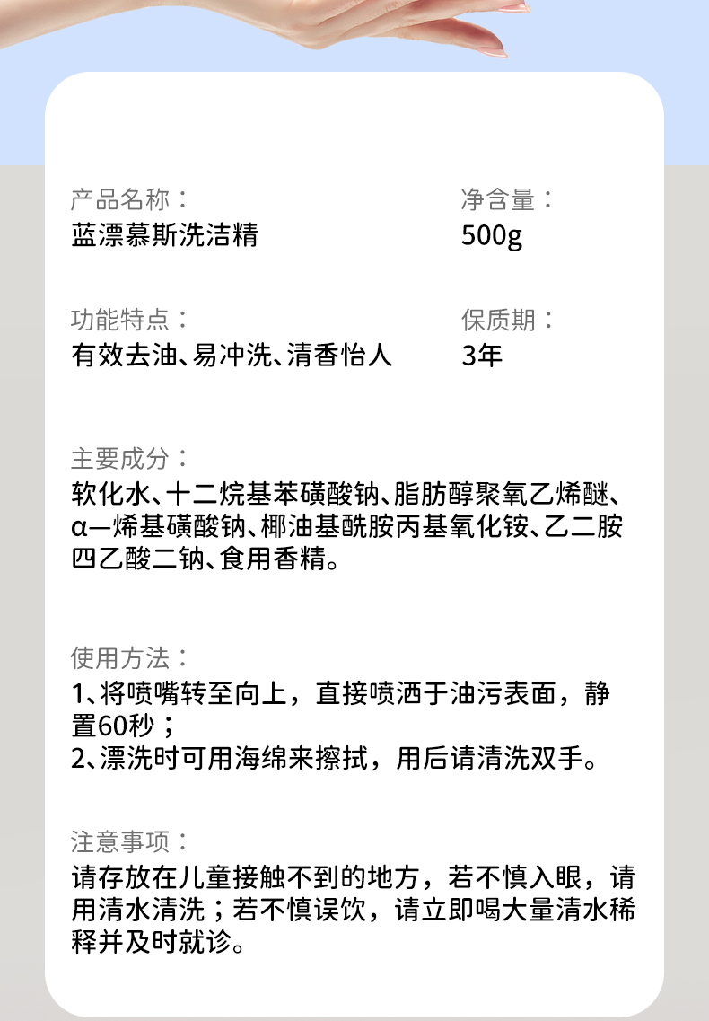 Lam pure/蓝漂慕斯洗洁精500g*8瓶LP-368991