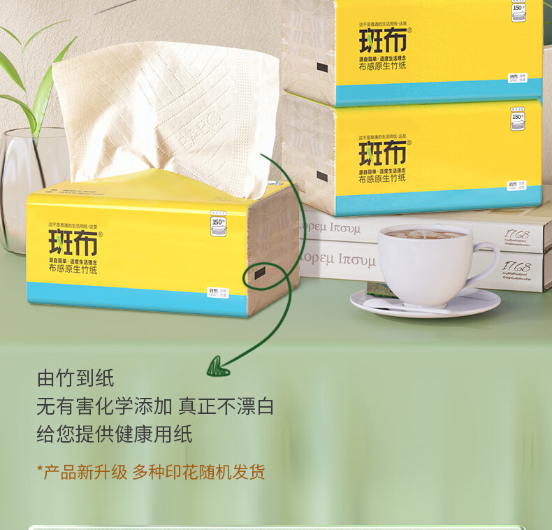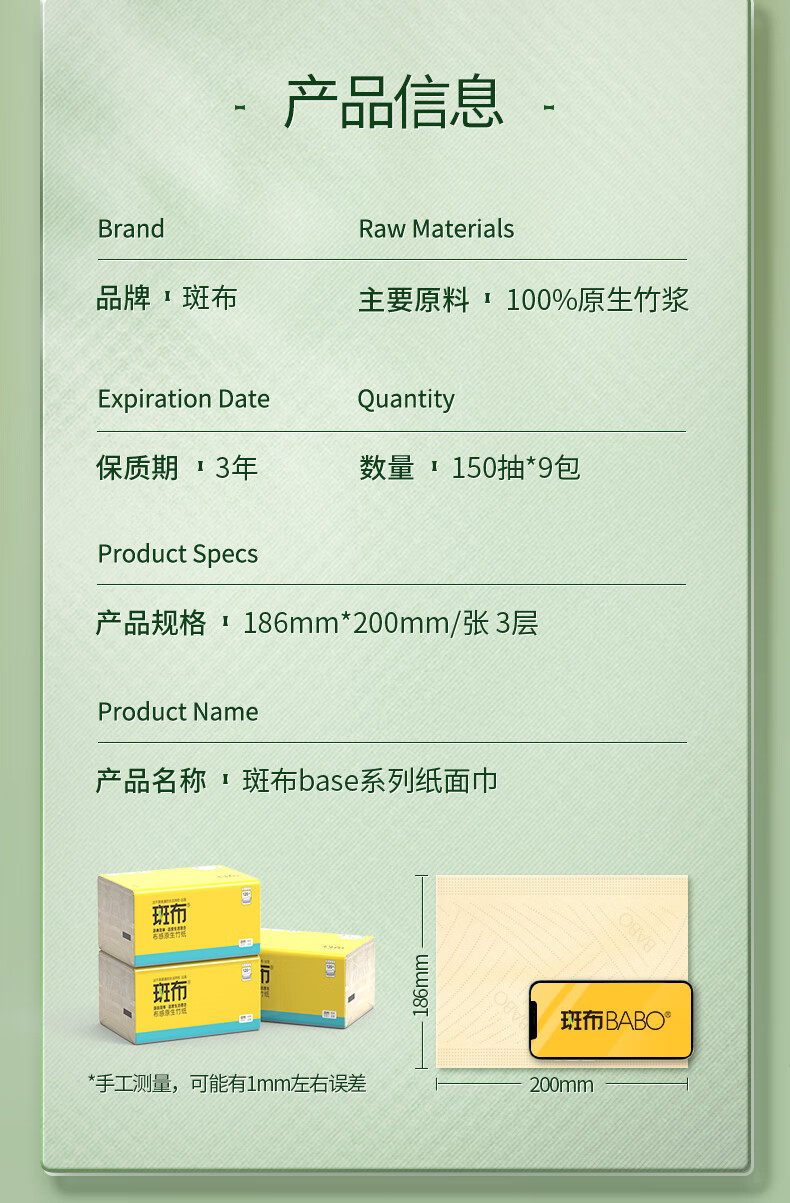 商品名称:BABO/斑布布感原生竹3层抽纸150抽*9包*2提