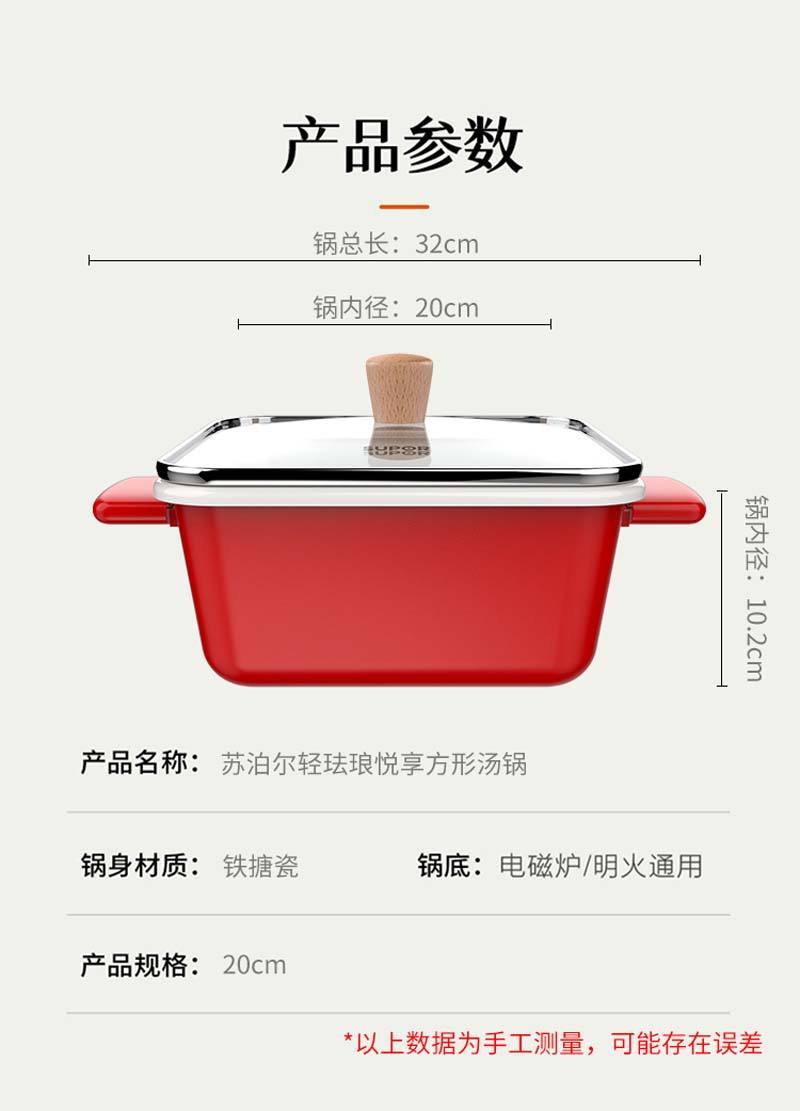 商品名称:【顺丰配送】SUPOR/苏泊尔20cm轻珐琅悦享方形汤锅VT20QF01