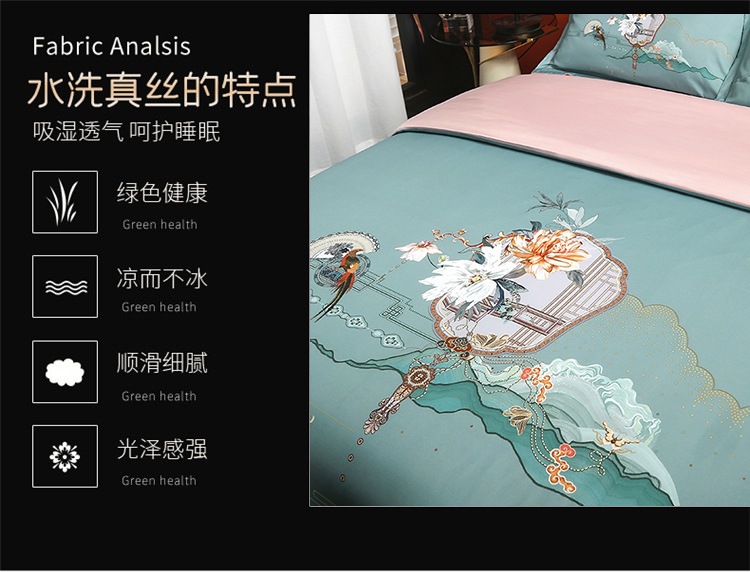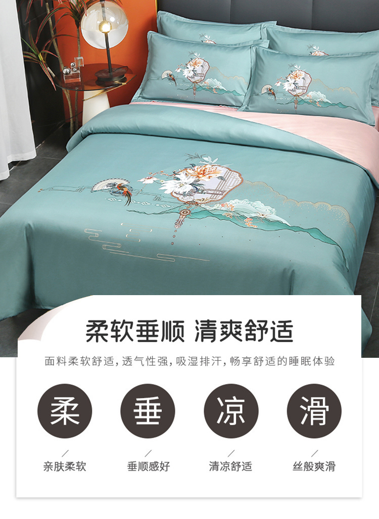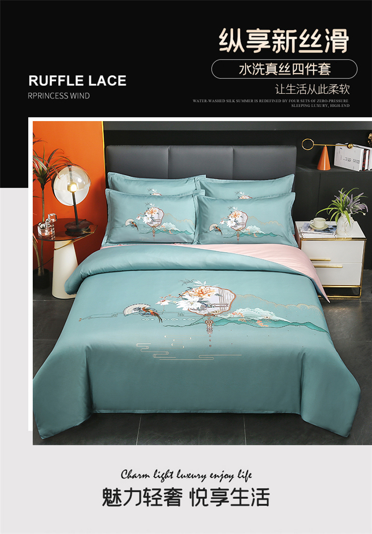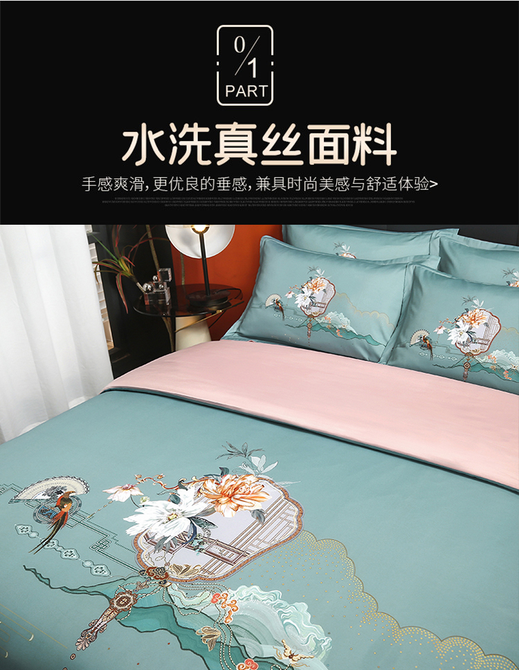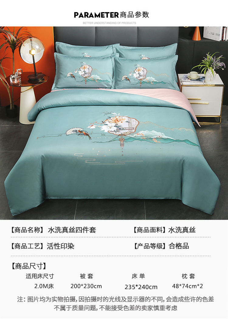 商品名称:PLOVER/啄木鸟风花雪月水洗真丝印花床品四件套200*230cm
