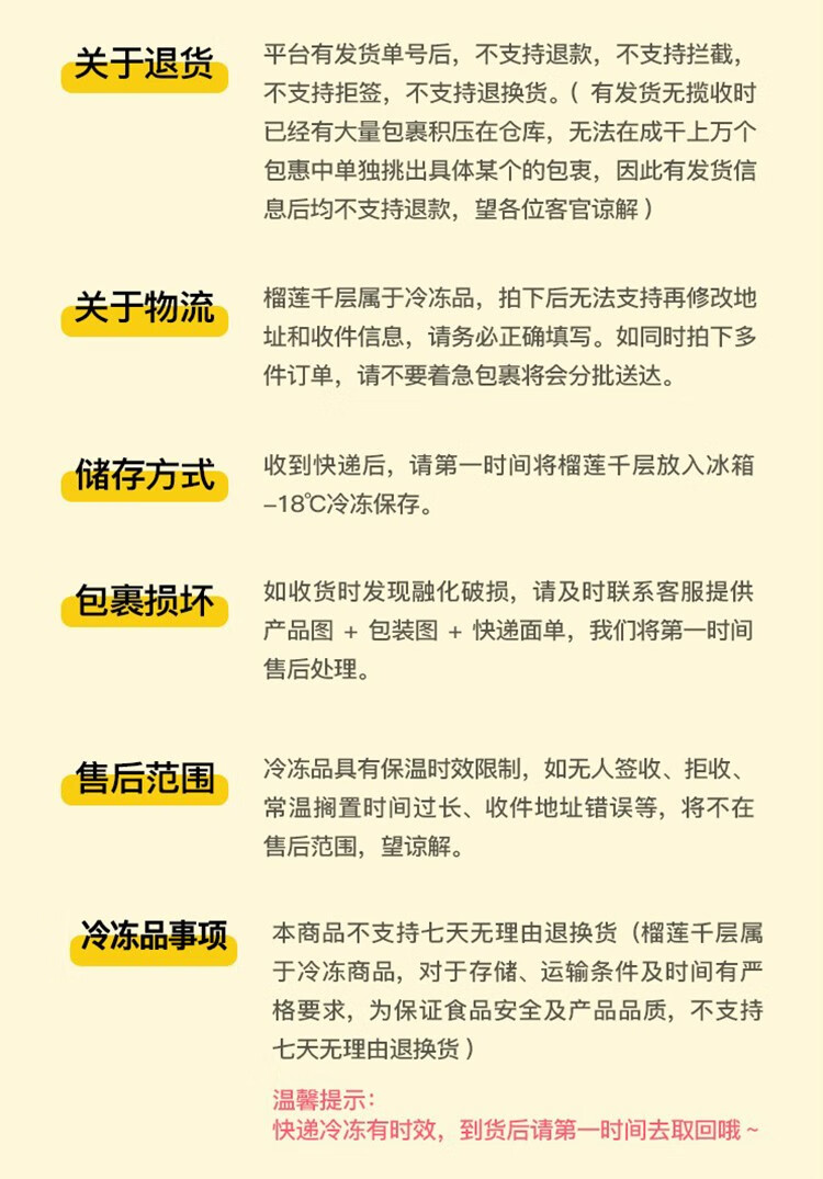 商品名称:【顺丰配送】榴莲西施榴莲千层蛋糕400g*2盒