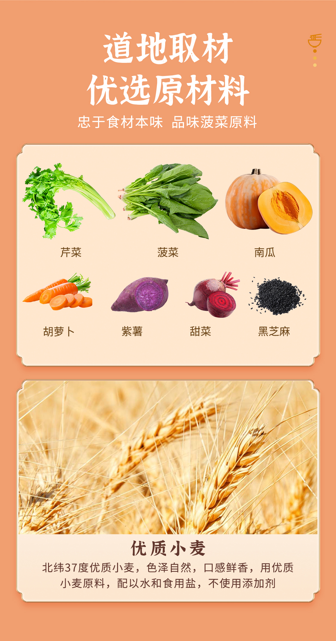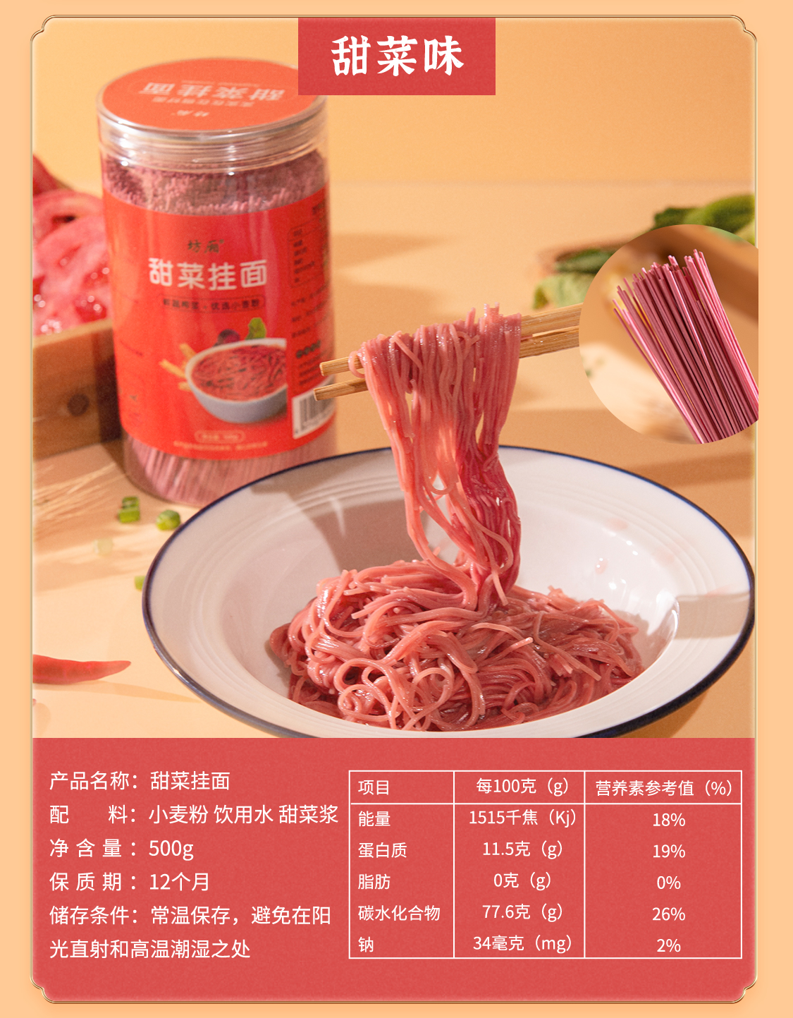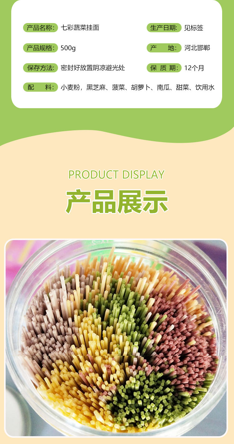 产品规格:南瓜挂面500g+胡萝卜挂面500g+甜菜挂面500g+七彩蔬菜挂面500g