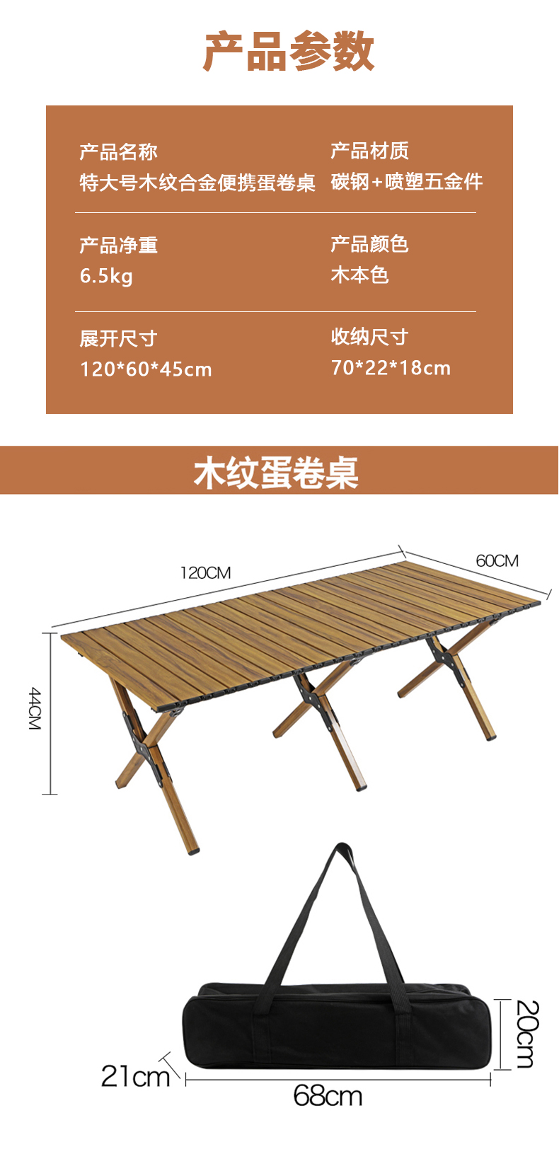 商品名称:趣游帮特大号木纹合金便携蛋卷桌-木本色Y49