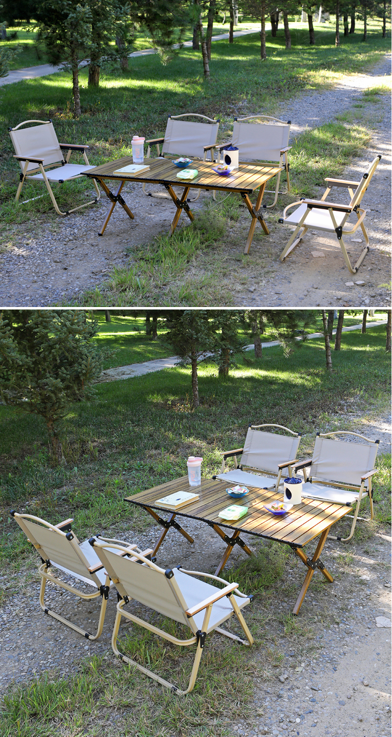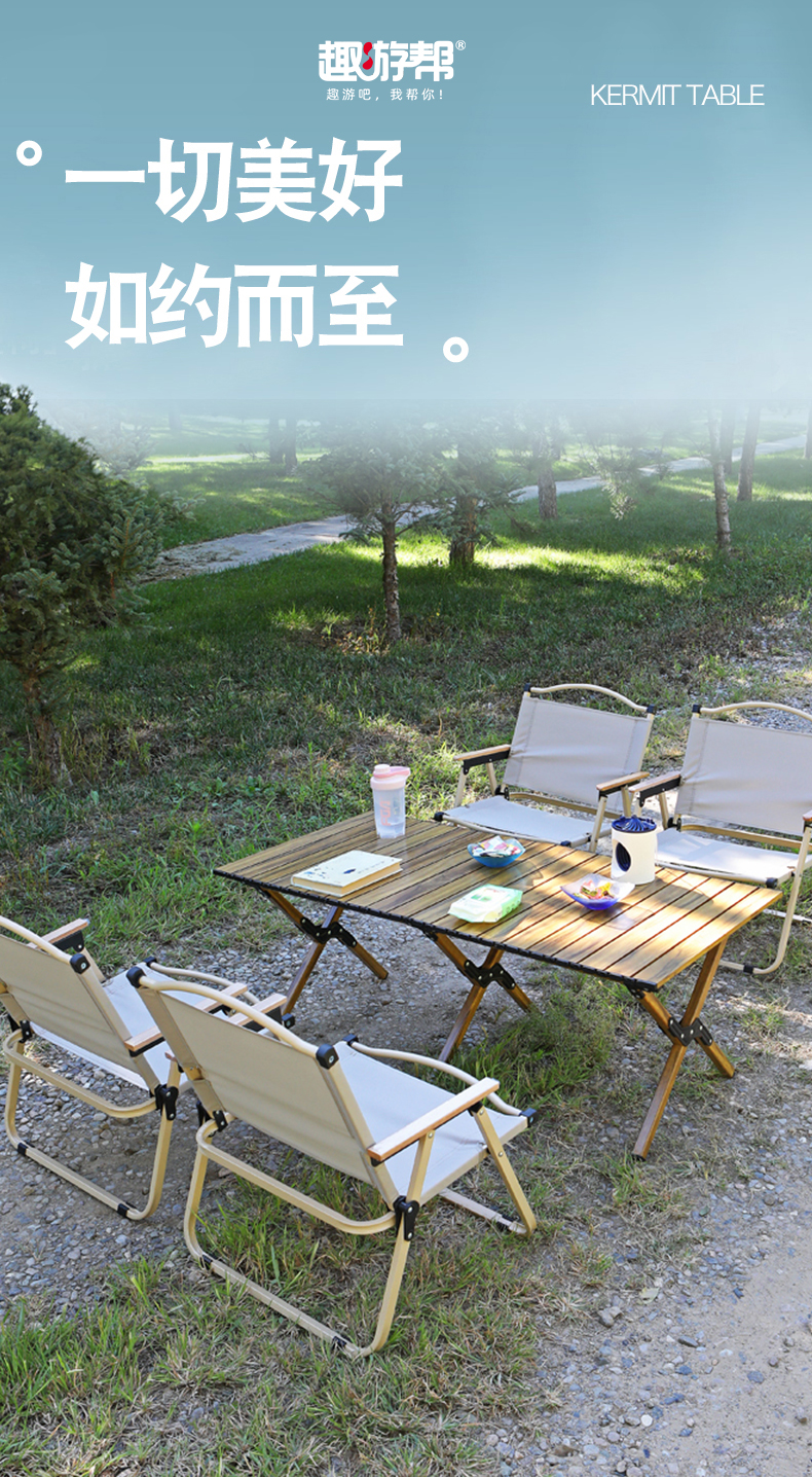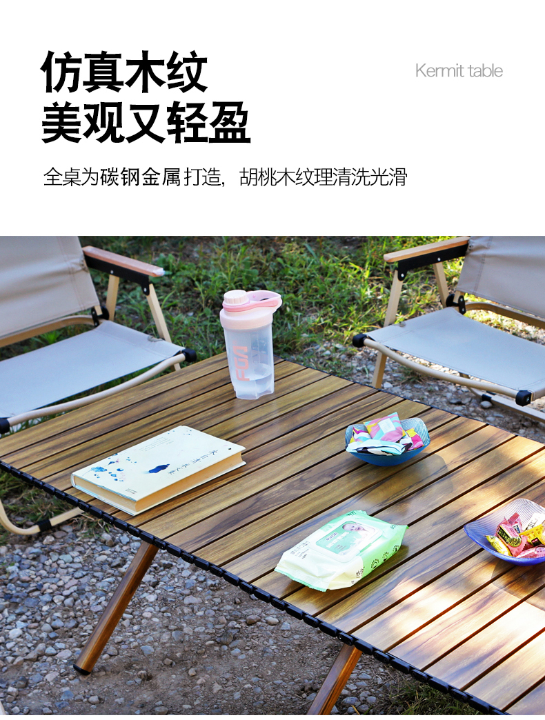 趣游帮特大号木纹合金便携蛋卷桌-木本色Y49