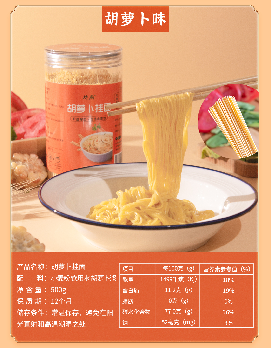 商品名称:坊厢挂面组合甜菜500g+南瓜500g+胡萝卜500g+黑芝麻500g+菠菜500g+芹菜500g+紫薯500g