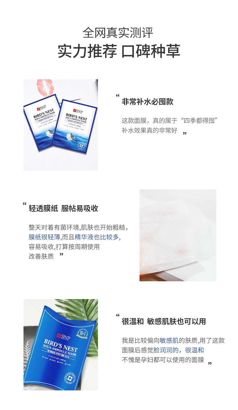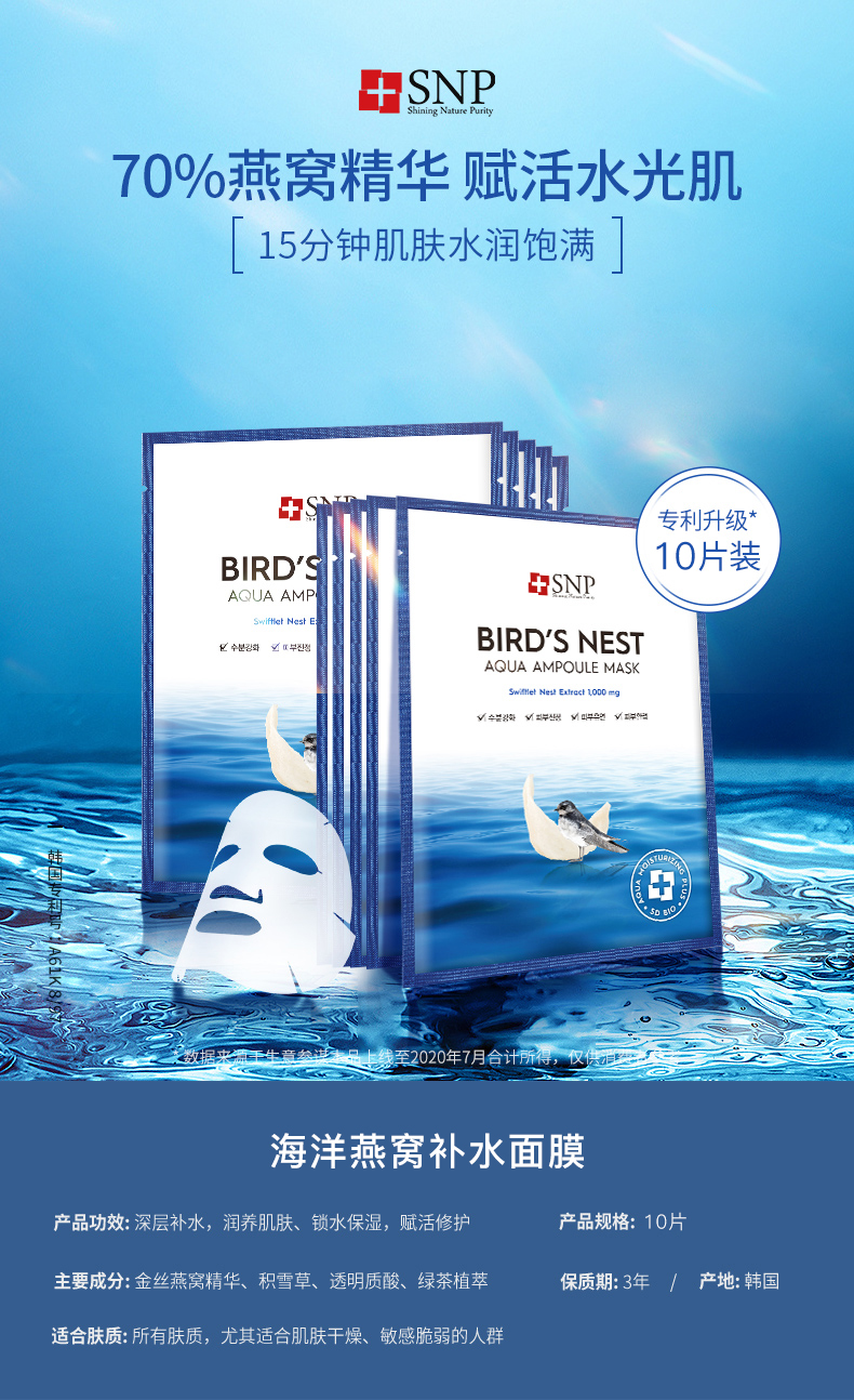 商品名称:SNP 燕窝补水面膜 25ml/片