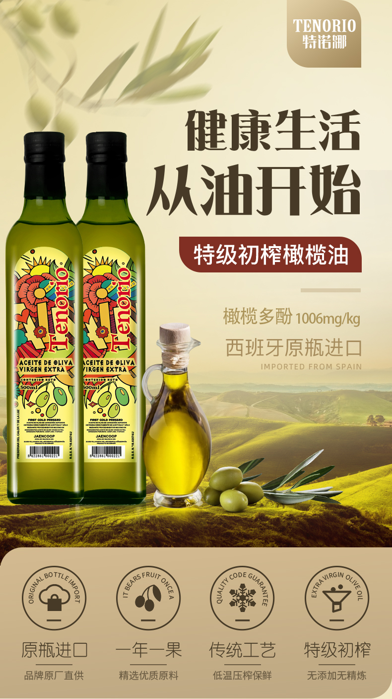 商品名称:TENORIO/特诺娜金标特级初榨橄榄油礼盒500ml*2瓶