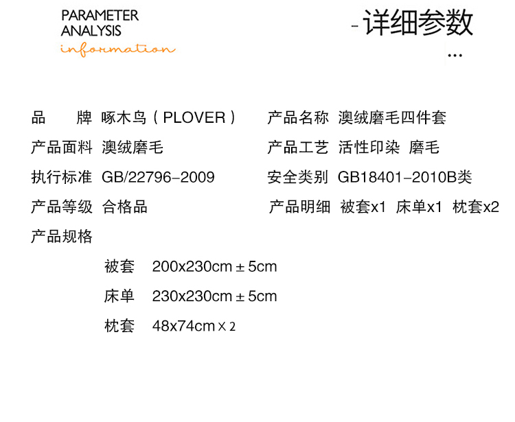 商品名称:PLOVER/啄木鸟格韵澳绒磨毛床品四件套200*230cm±5cm