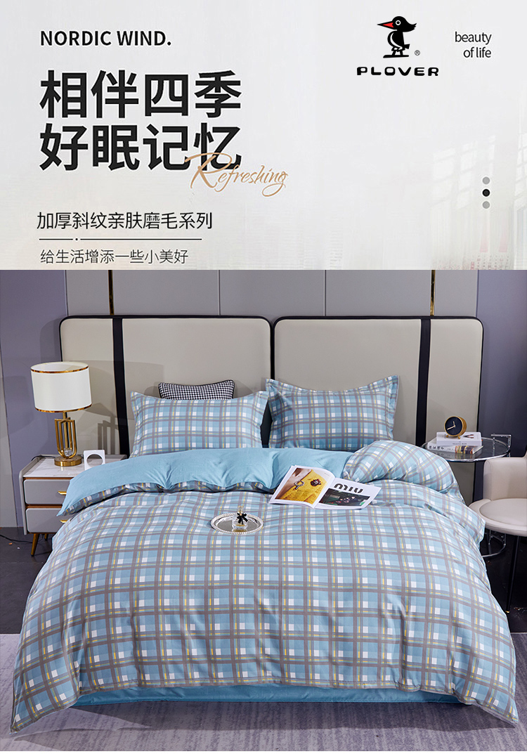 PLOVER/啄木鸟格韵澳绒磨毛床品四件套200*230cm±5cm