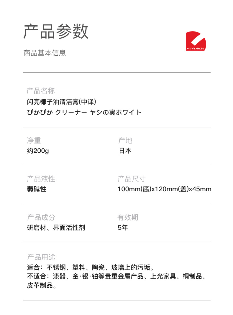商品名称:Aimedia/爱美得闪亮椰子油清洁膏约200g