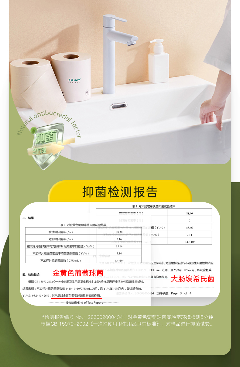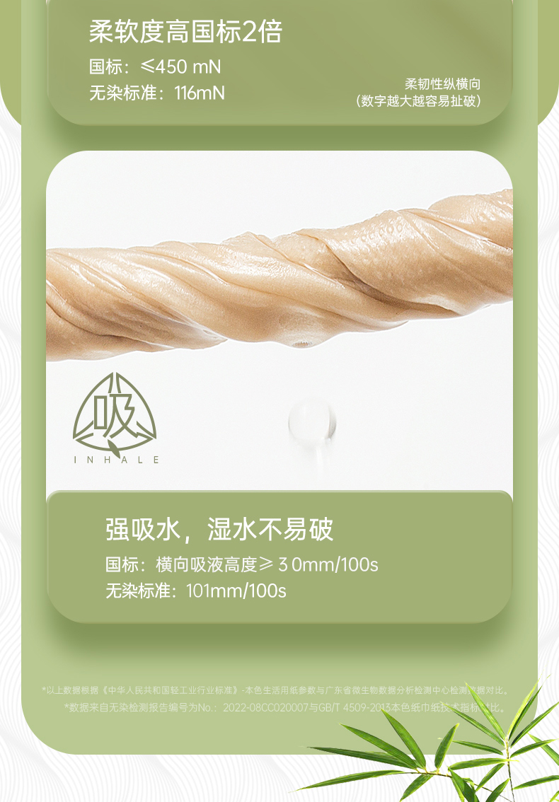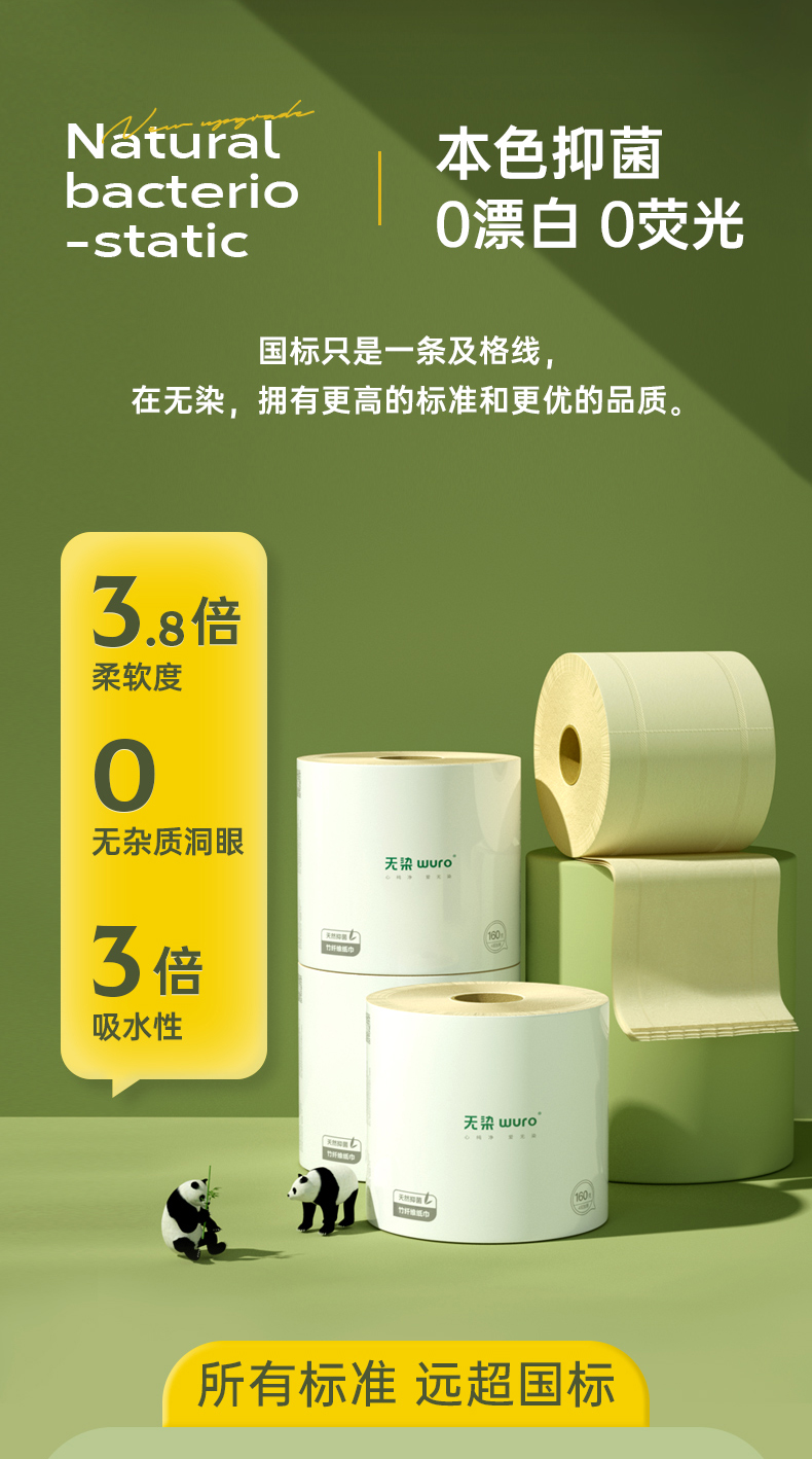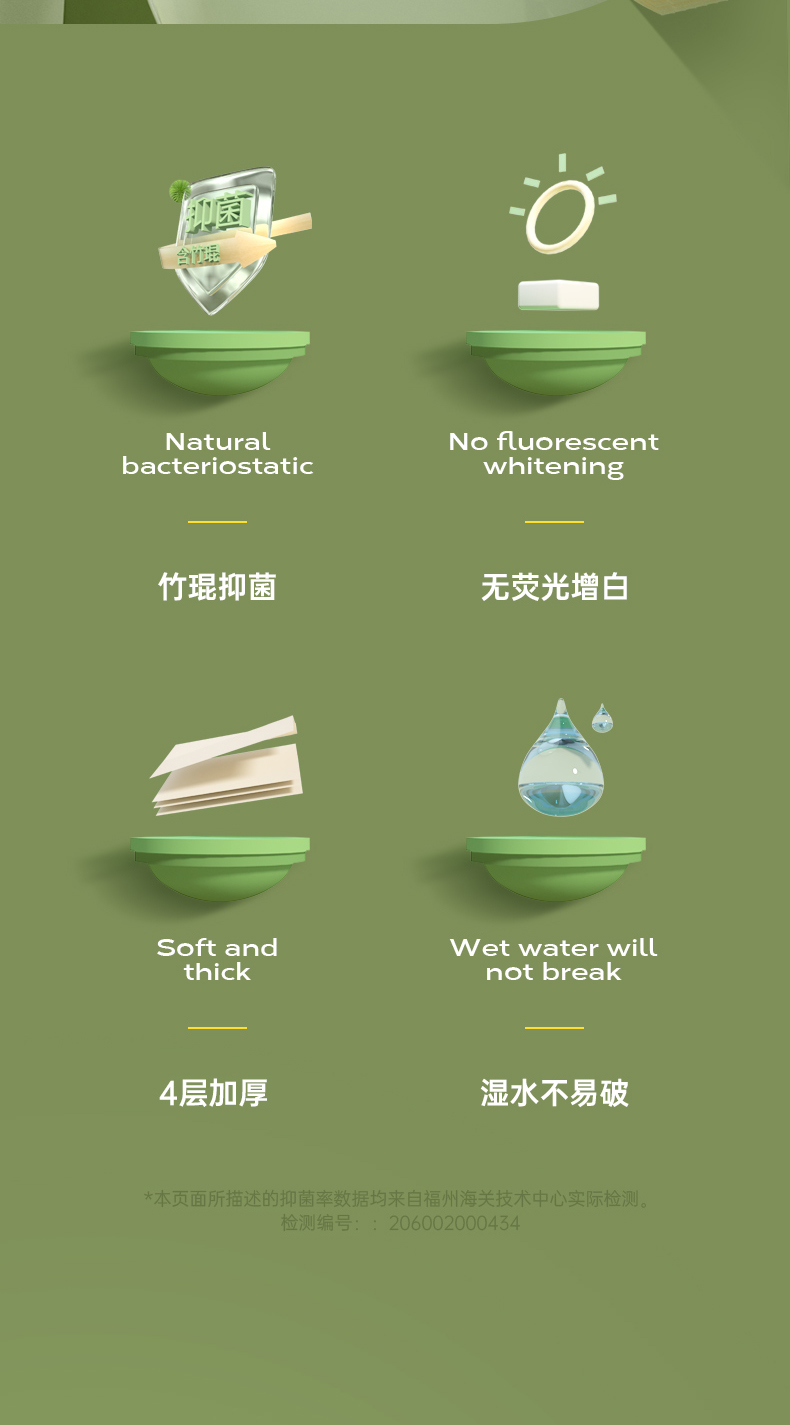 无染竹纤维抑菌四层有芯卷纸160g*24卷