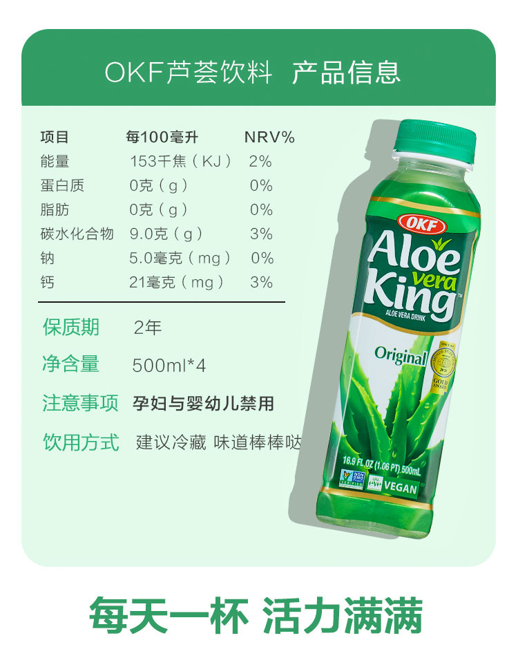商品名称:OKF库拉索芦荟饮料套装 无糖500ml*4瓶+含糖500ml*4瓶