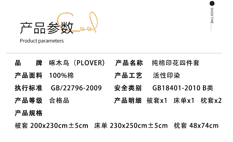 商品名称:PLOVER/啄木鸟简单方格纯棉印花床品四件套200*230cm±5cm