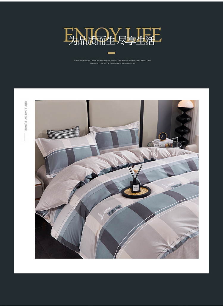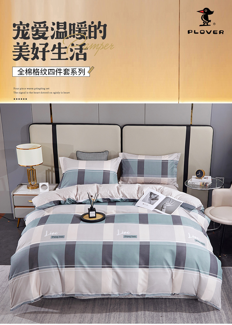 PLOVER/啄木鸟简单方格纯棉印花床品四件套200*230cm±5cm