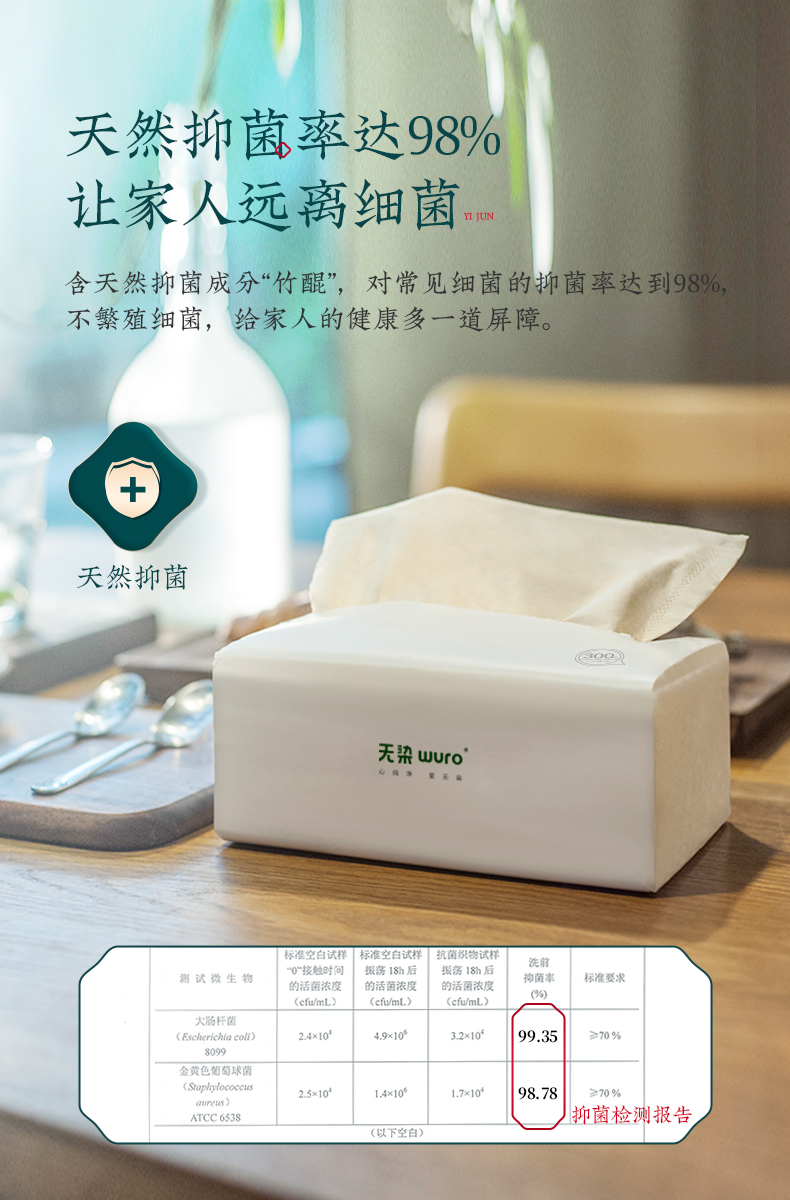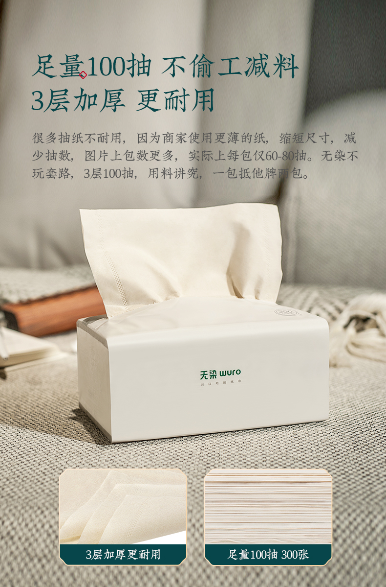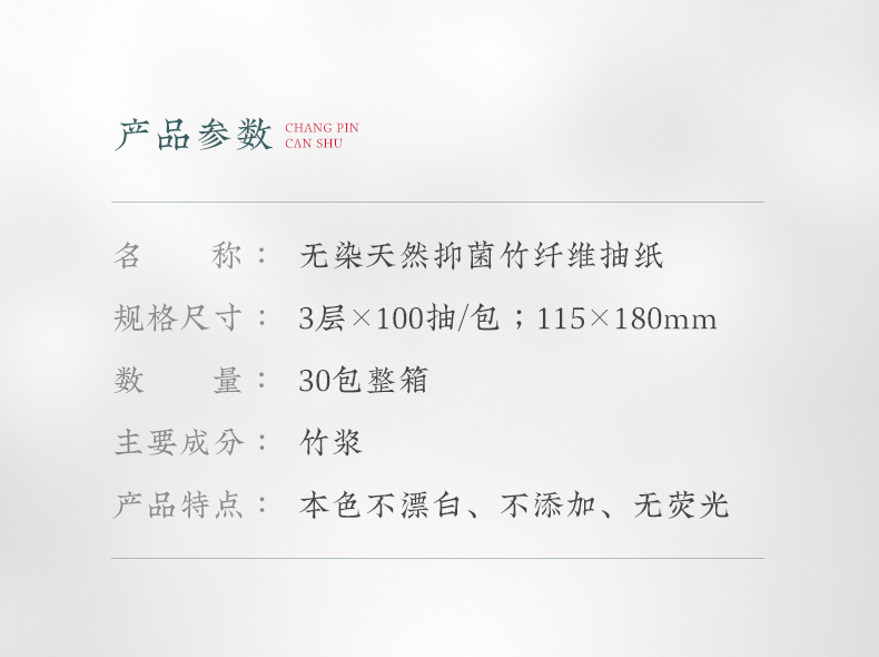商品名称:无染天然抑菌竹纤维三层抽纸整箱实惠装100抽*30包