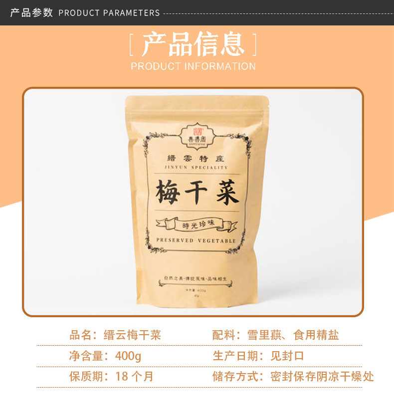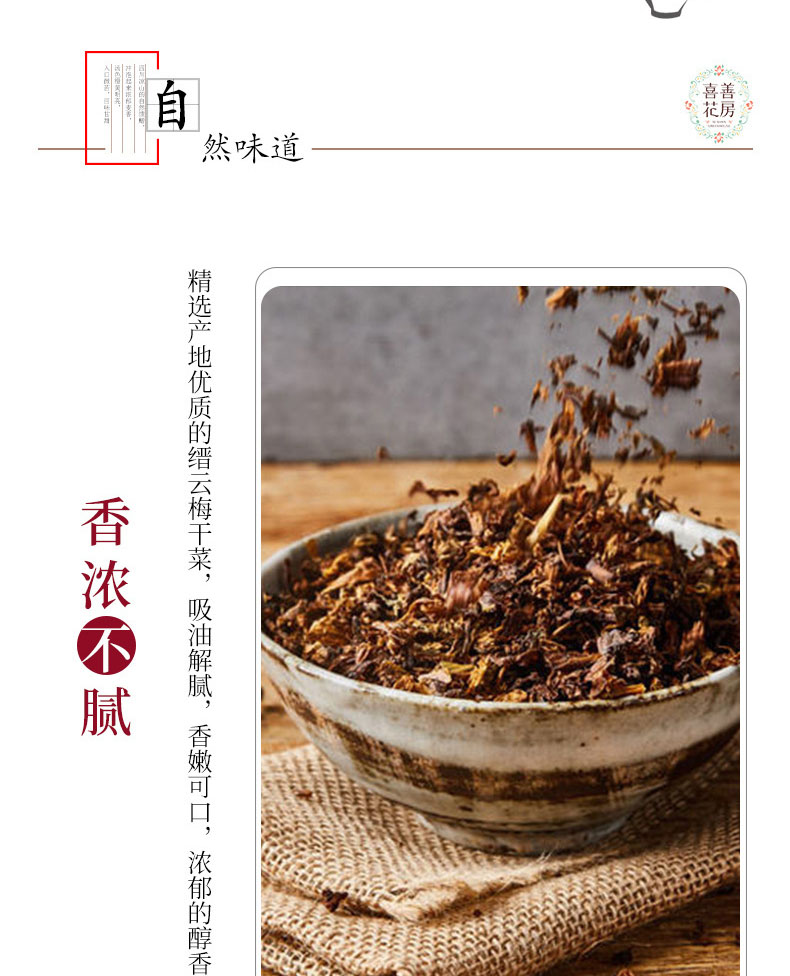 商品名称:喜善花房缙云梅干菜400g*2袋