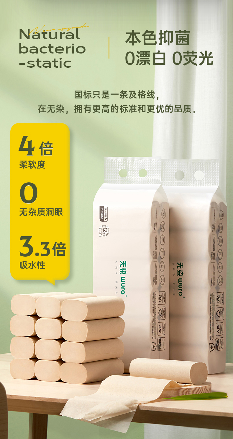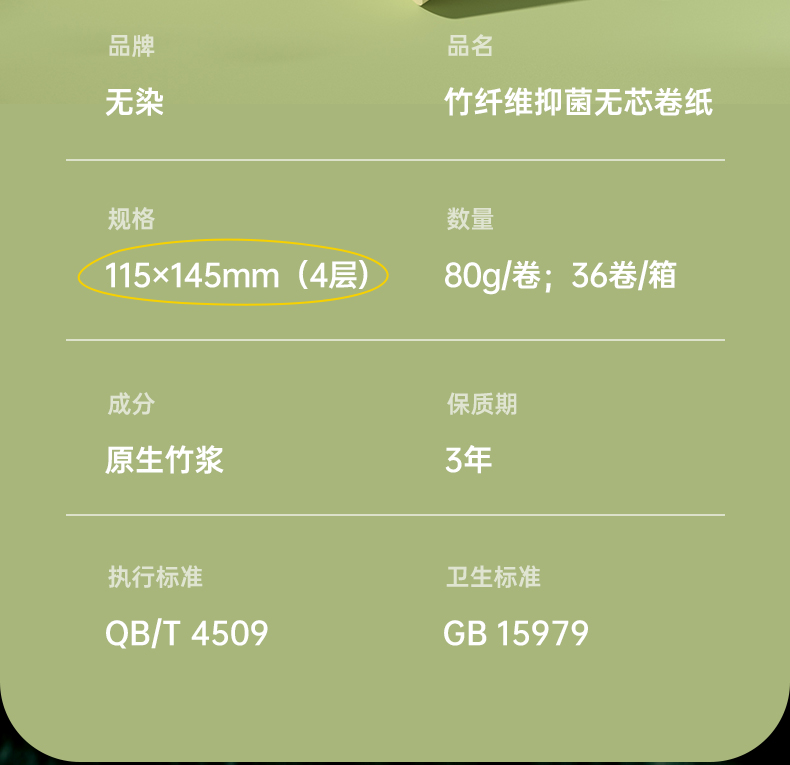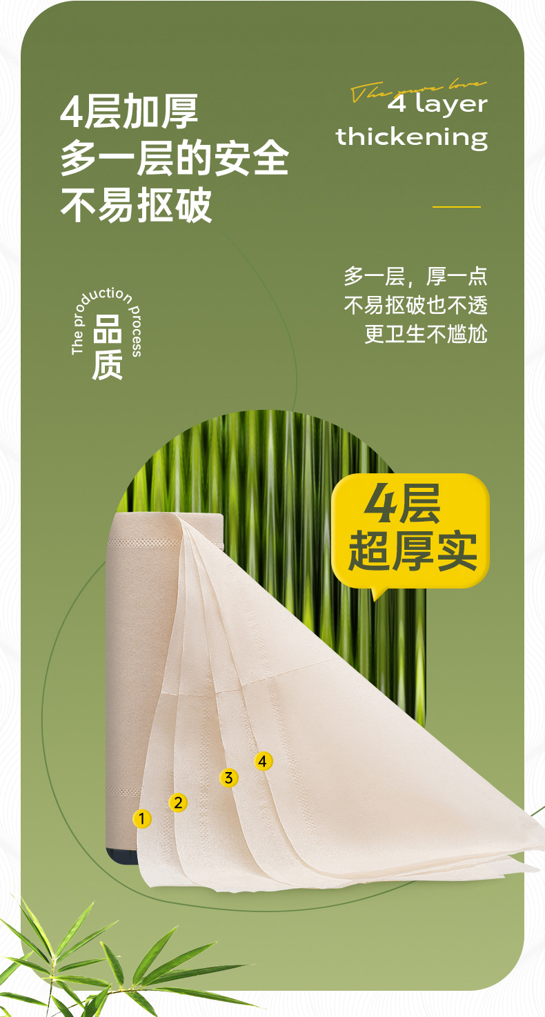 商品名称:无染竹纤维抑菌四层无芯卷纸80g*36卷