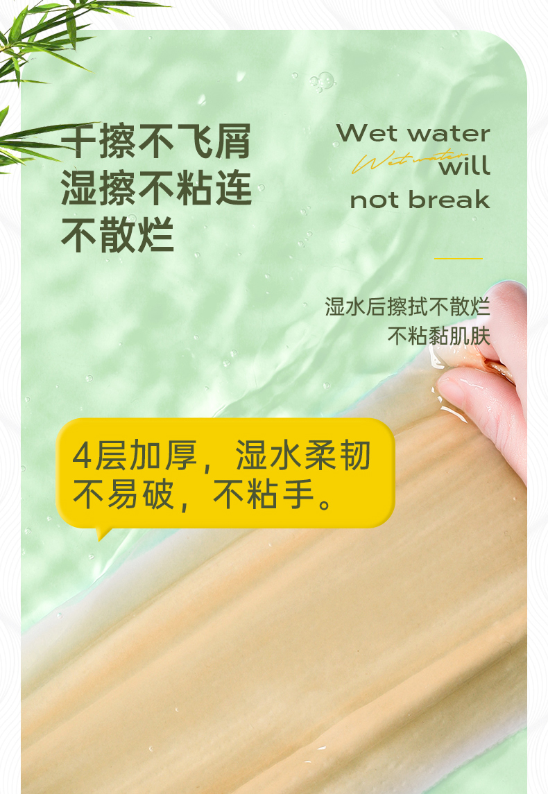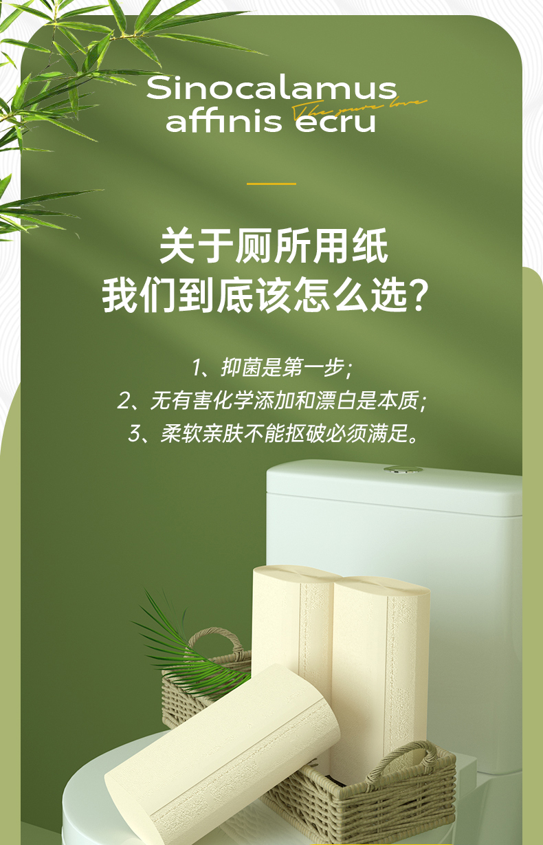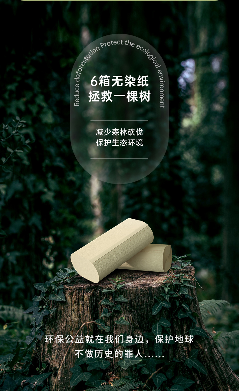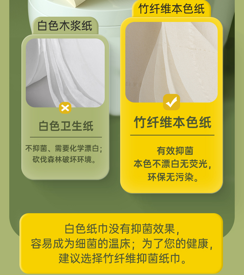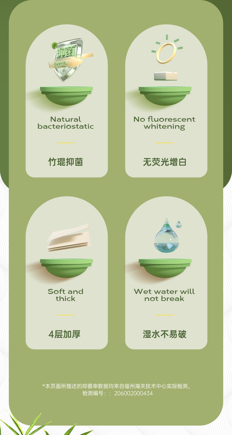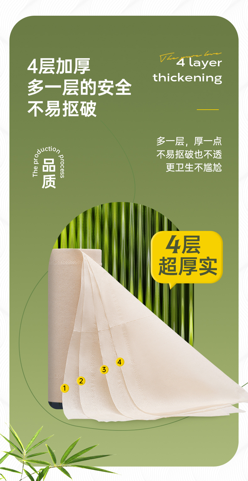 无染竹纤维抑菌四层无芯卷纸52.5g*16卷*6提