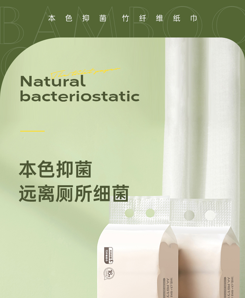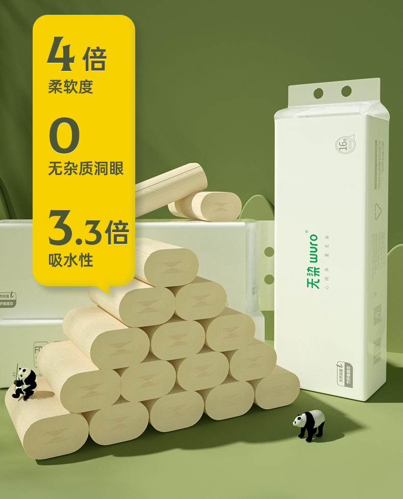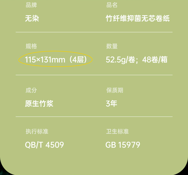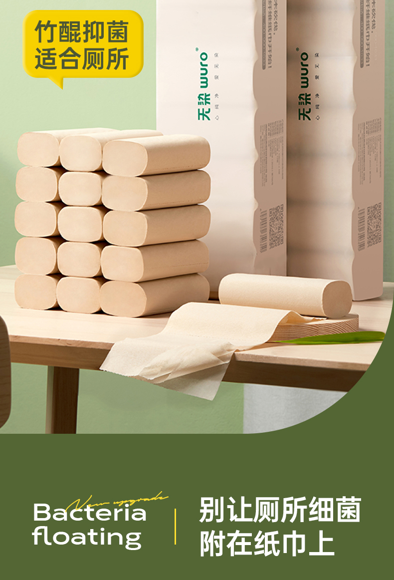 商品名称:无染竹纤维抑菌四层无芯卷纸52.5g*16卷*6提