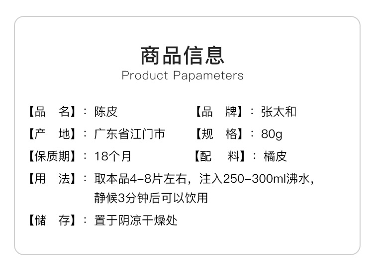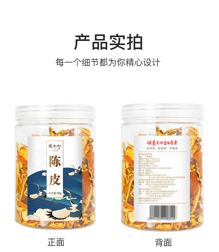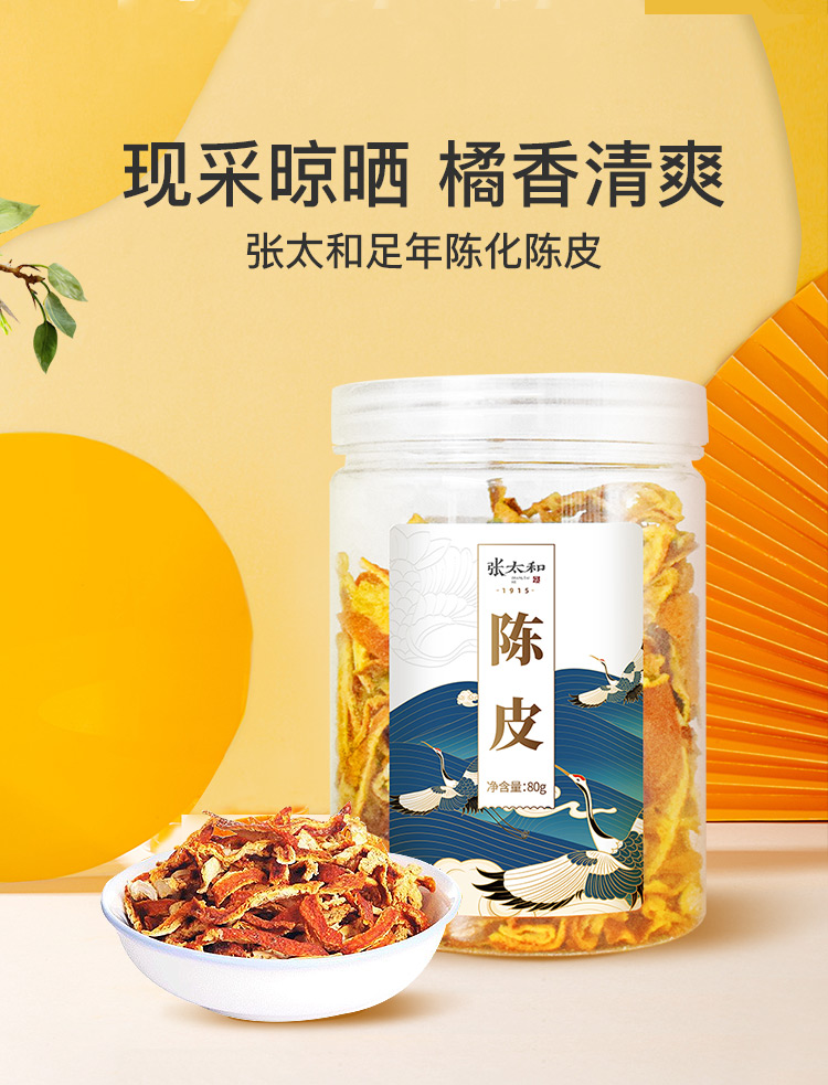 商品名称:张太和养生饮品冲泡四季组合陈皮80g+金丝皇菊10g+山楂片120g