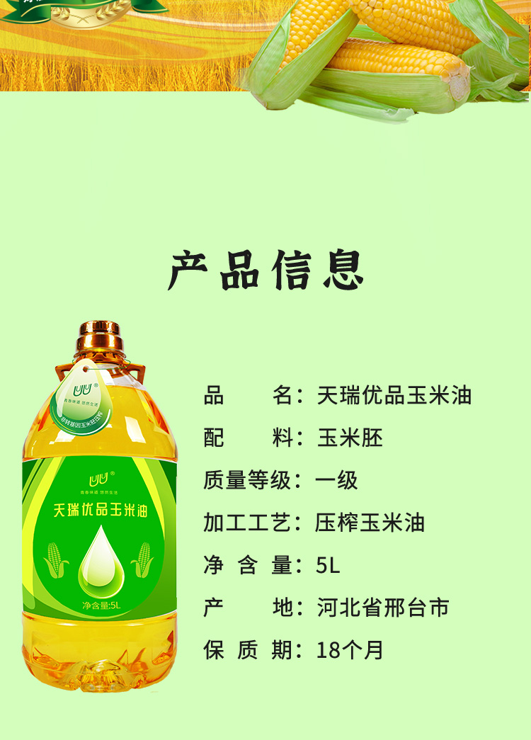 商品名称:天瑞优品非转基因玉米油5L